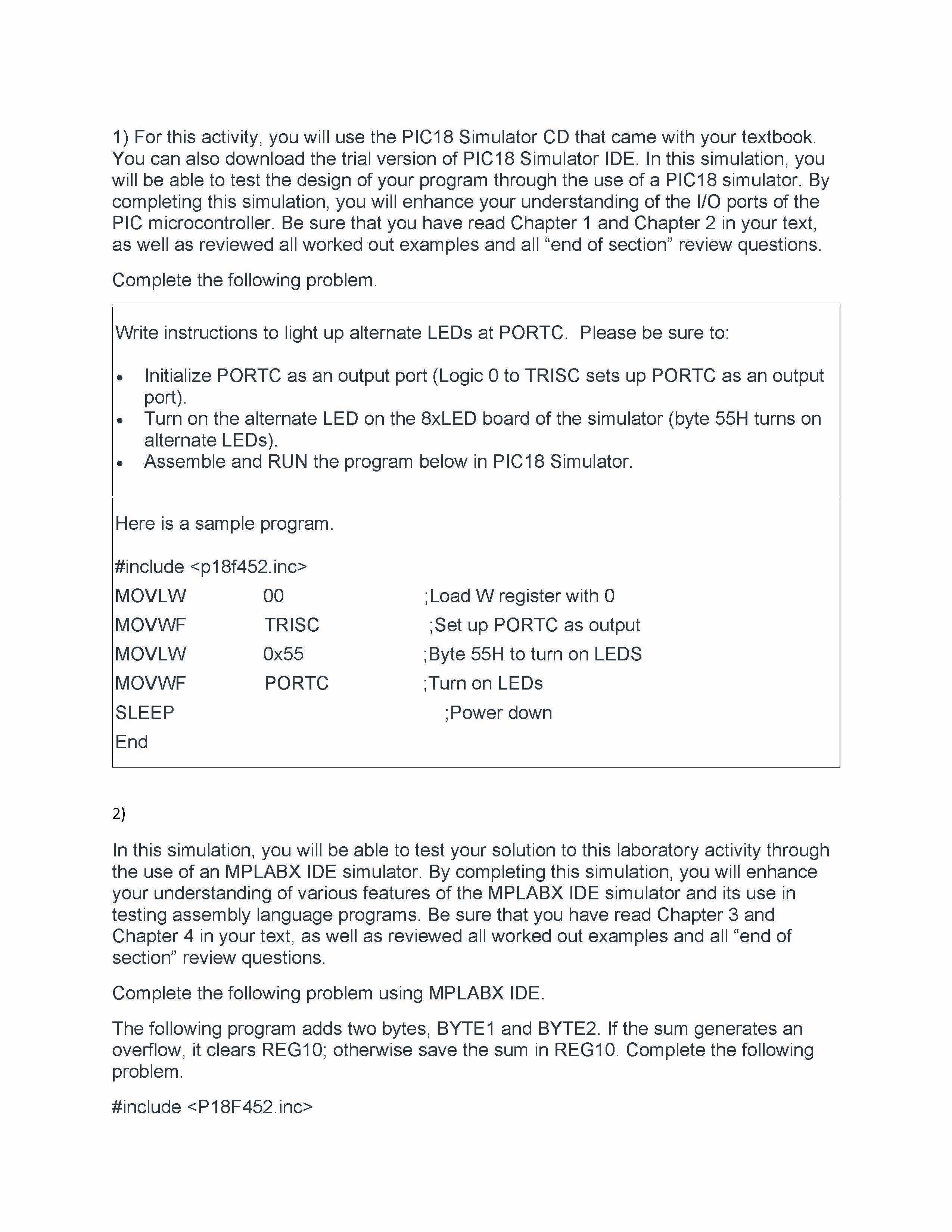 1) For this activity, you will use the PIC18 Simulator CD that came...