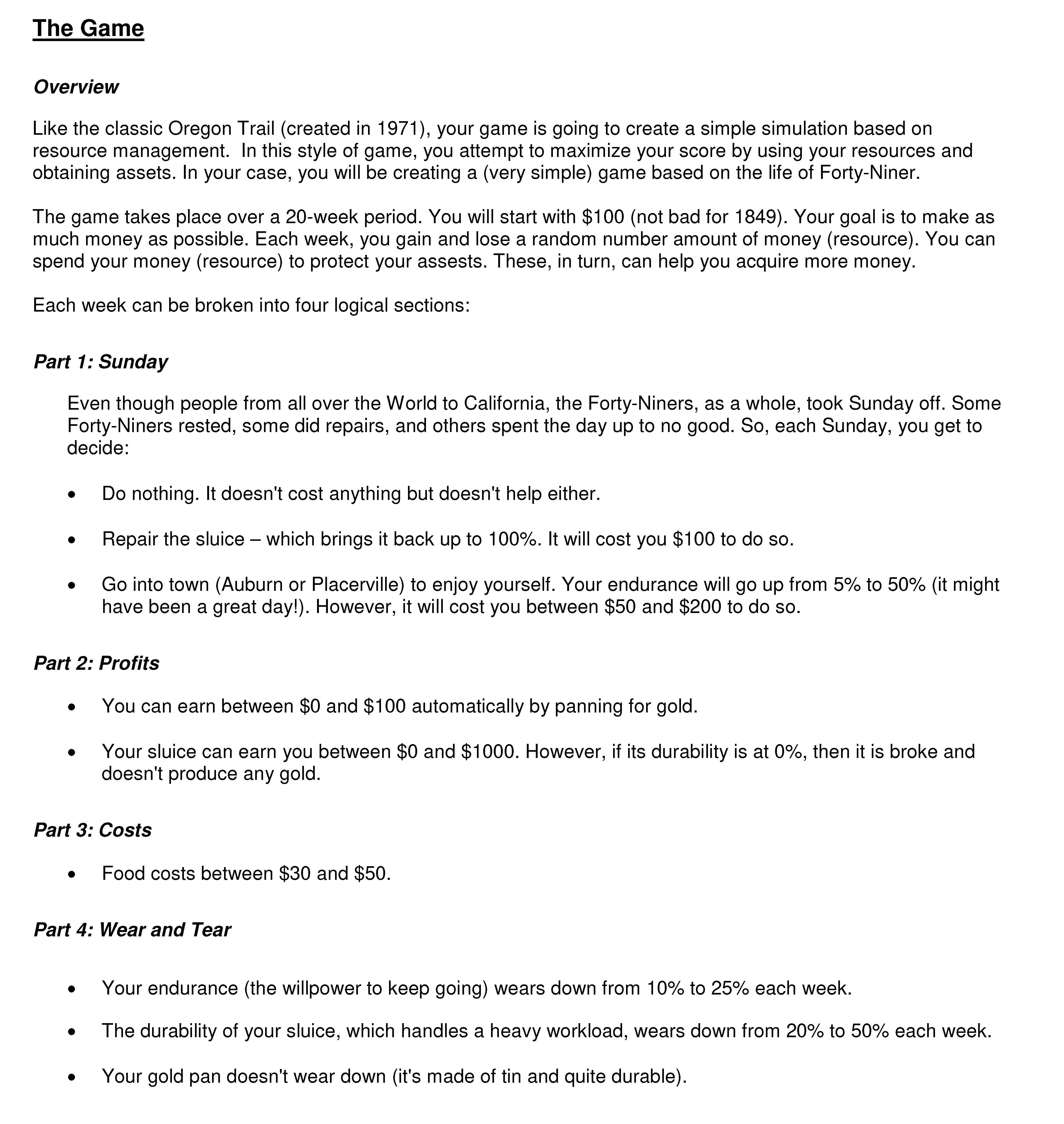 The Game Overview Like the classic Oregon Trail (created in 1971)...
