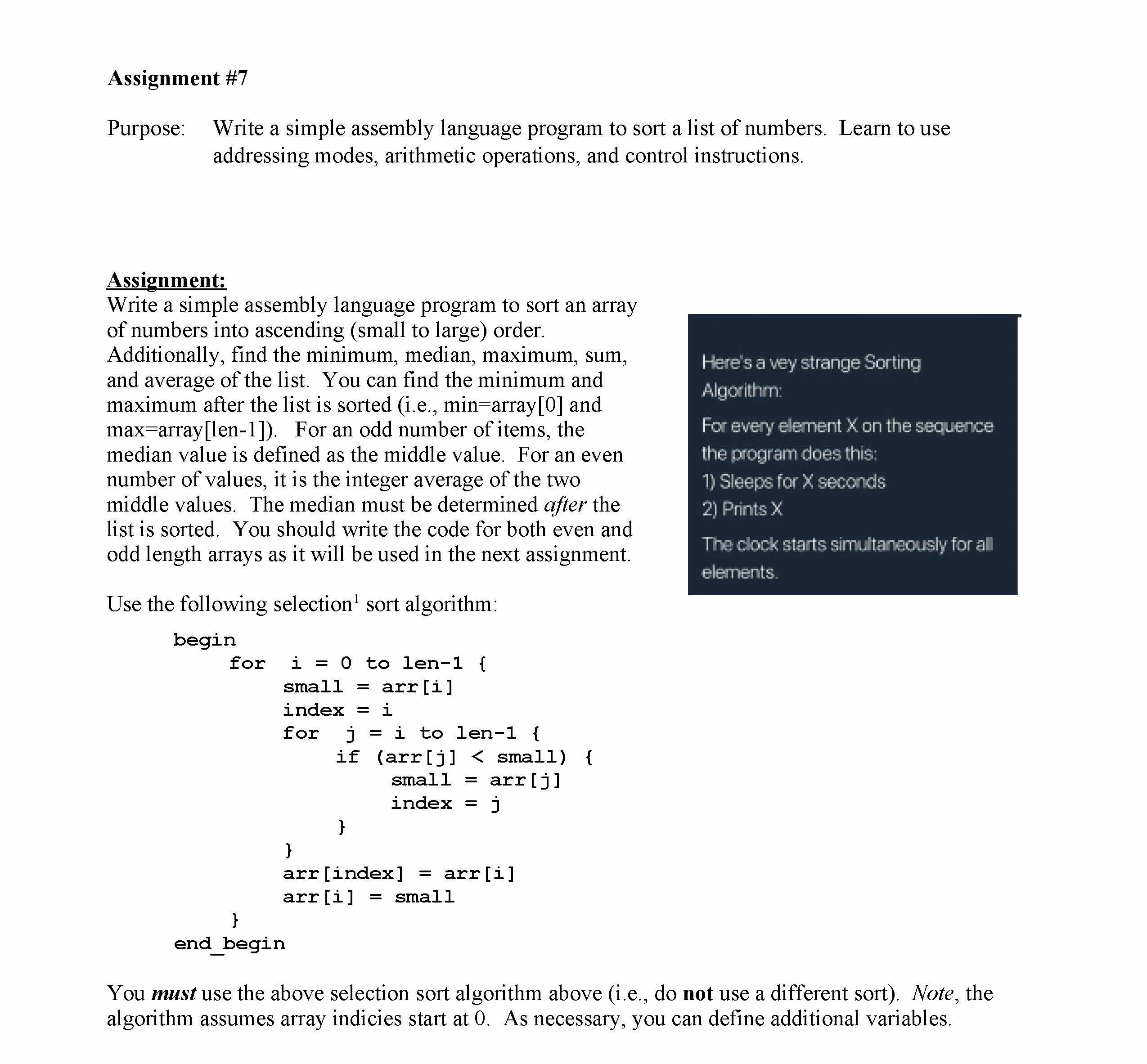 Assignment #7 Purpose: Write a simple assembly language program to...