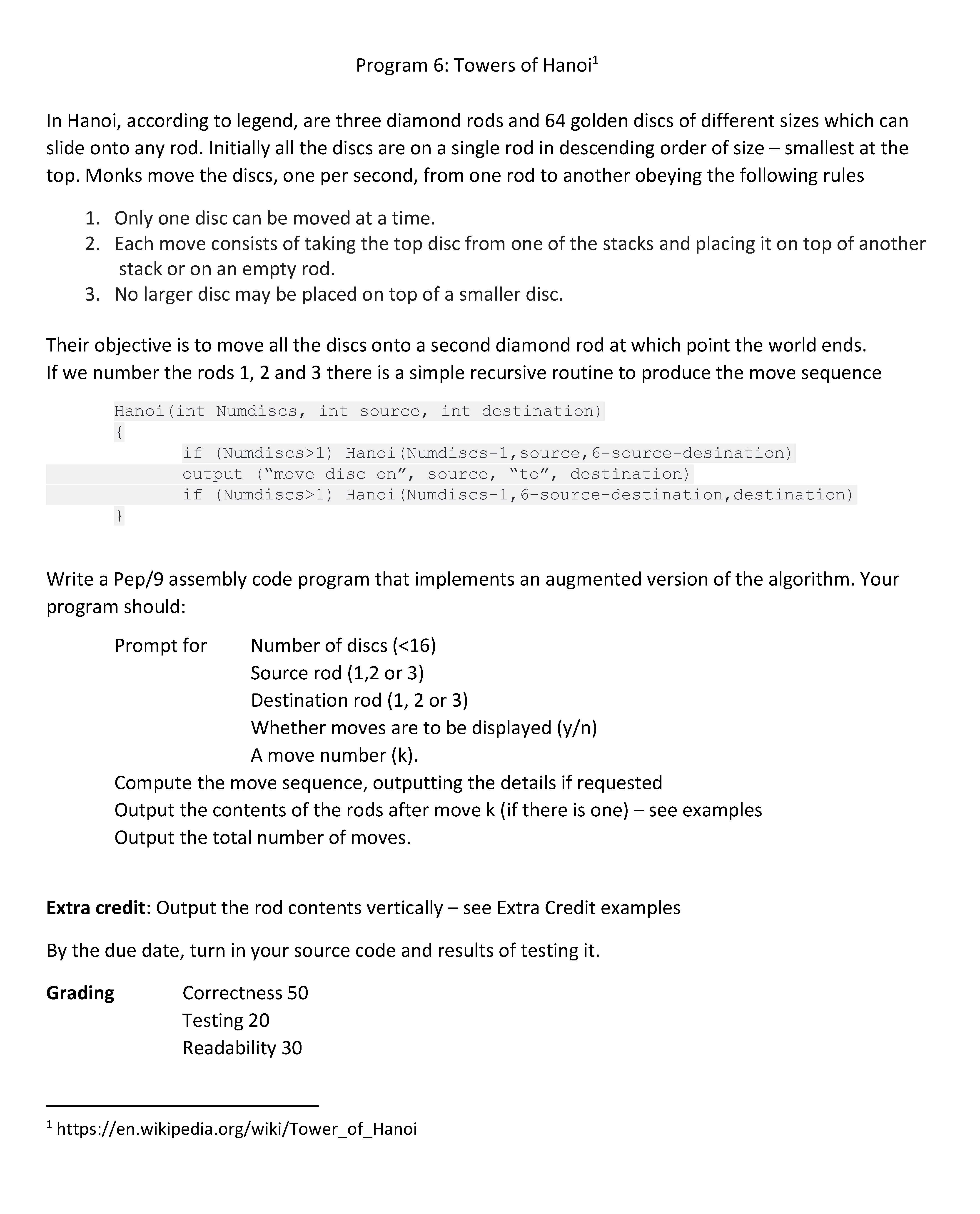 Program 6: Towers of Hanoi1 In Hanoi, according to legend, are thr...