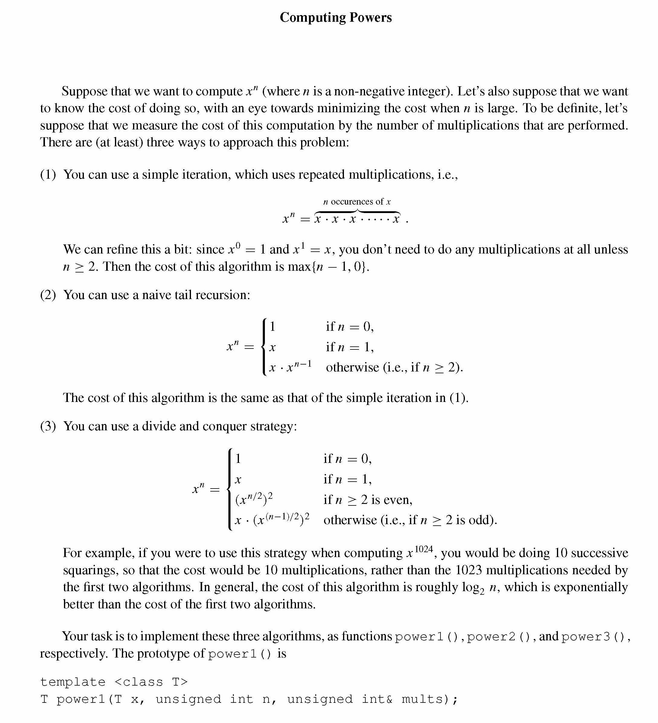 Computing Powers Suppose that we want to compute x" (where n ...