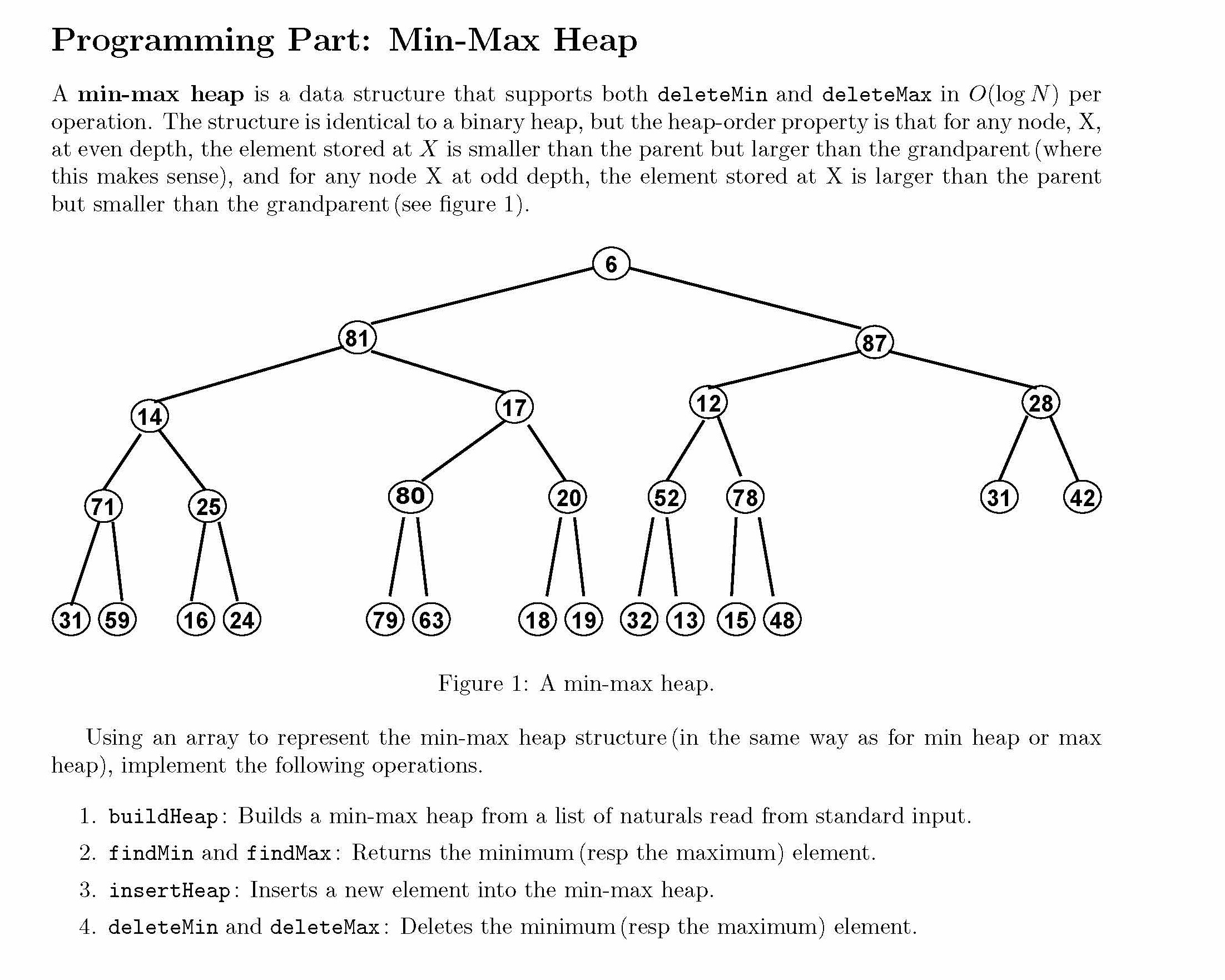 Programming Part: Min-Max Heap A min-max heap is a data structure...