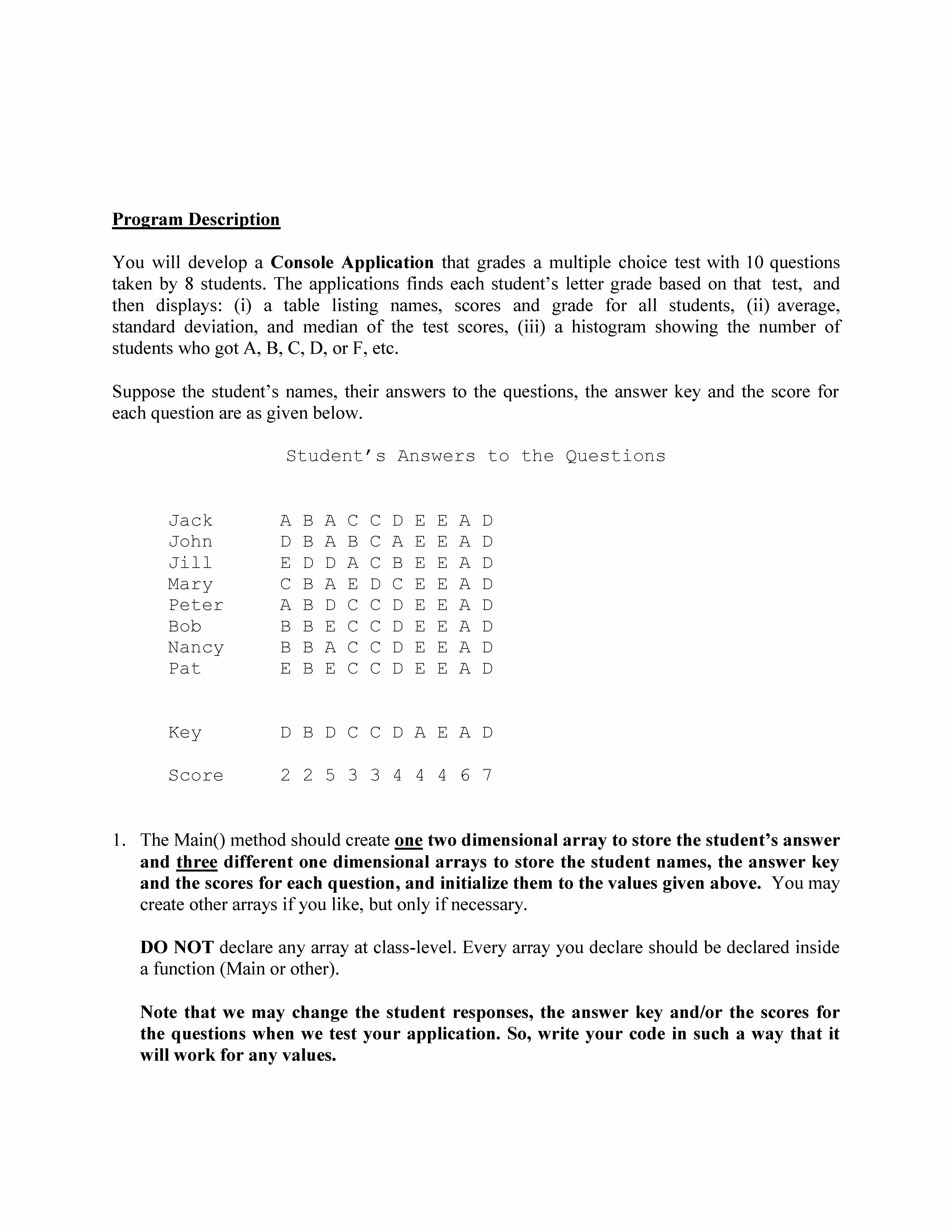 Program Description You will develop Console Application that grad...