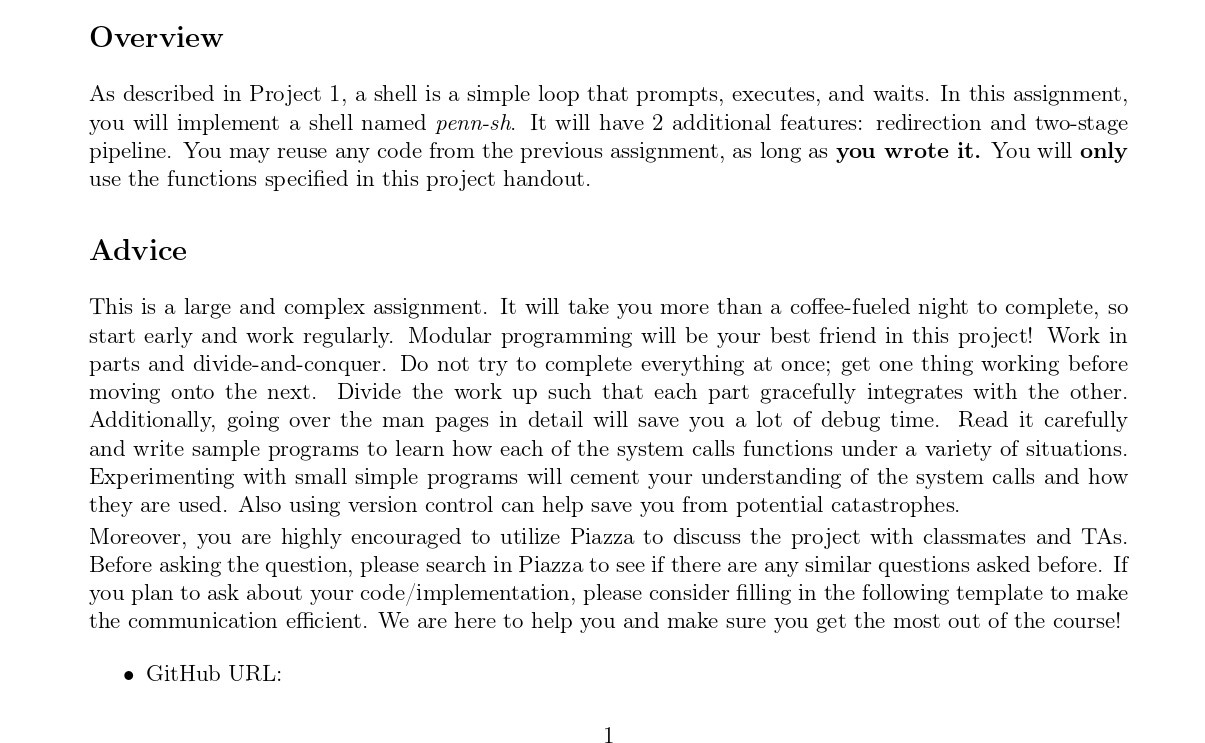 Overview As described in Project 1, a shell is a simple loop that ...