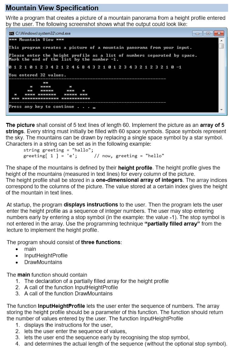 Mountain View Specification Write a program that creates a picture...