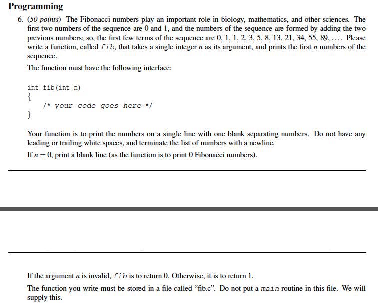 Programming 6. (50 points) The Fibonacci numbers play an important...