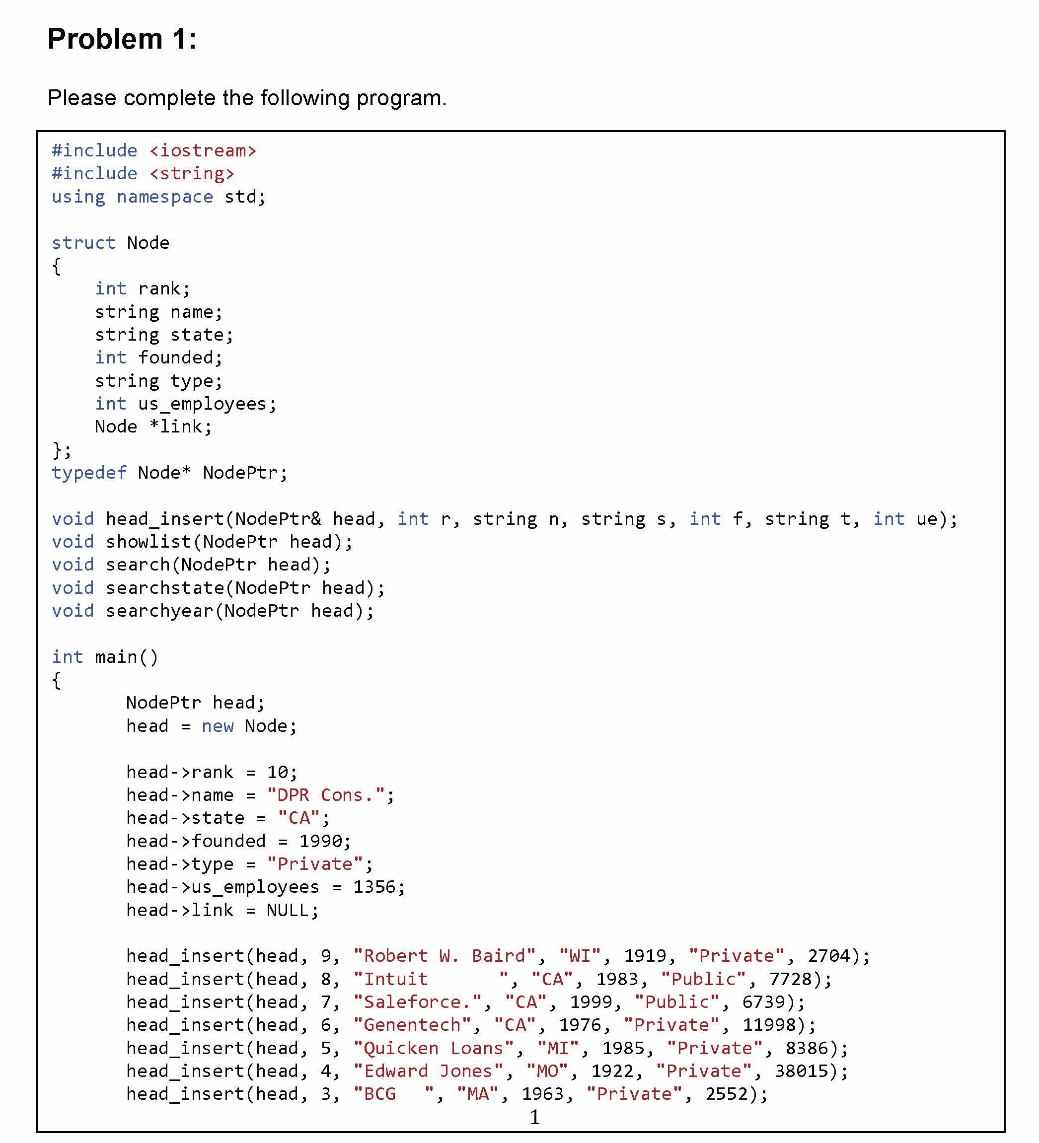 Problem 1: Please complete the following program. #include kiostr...
