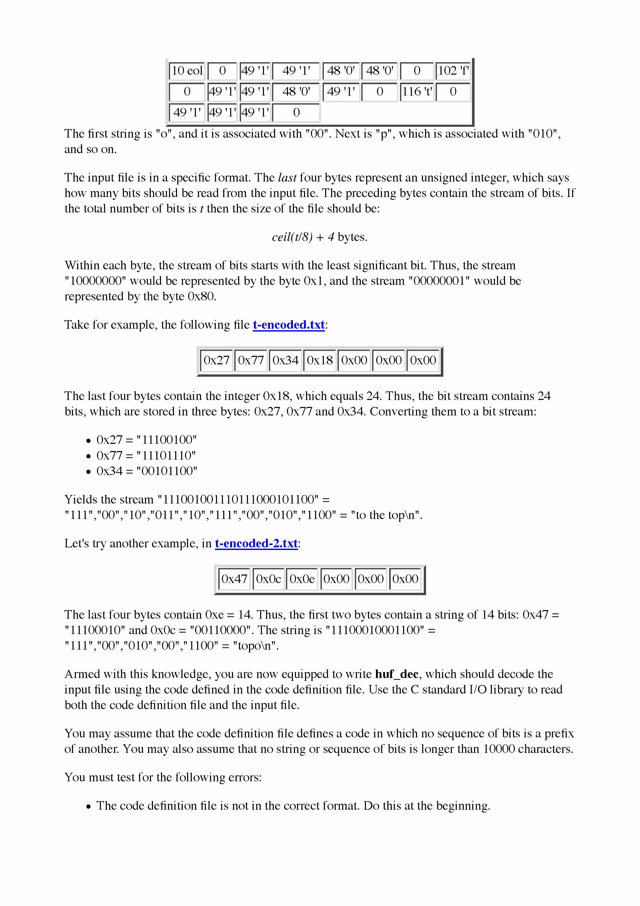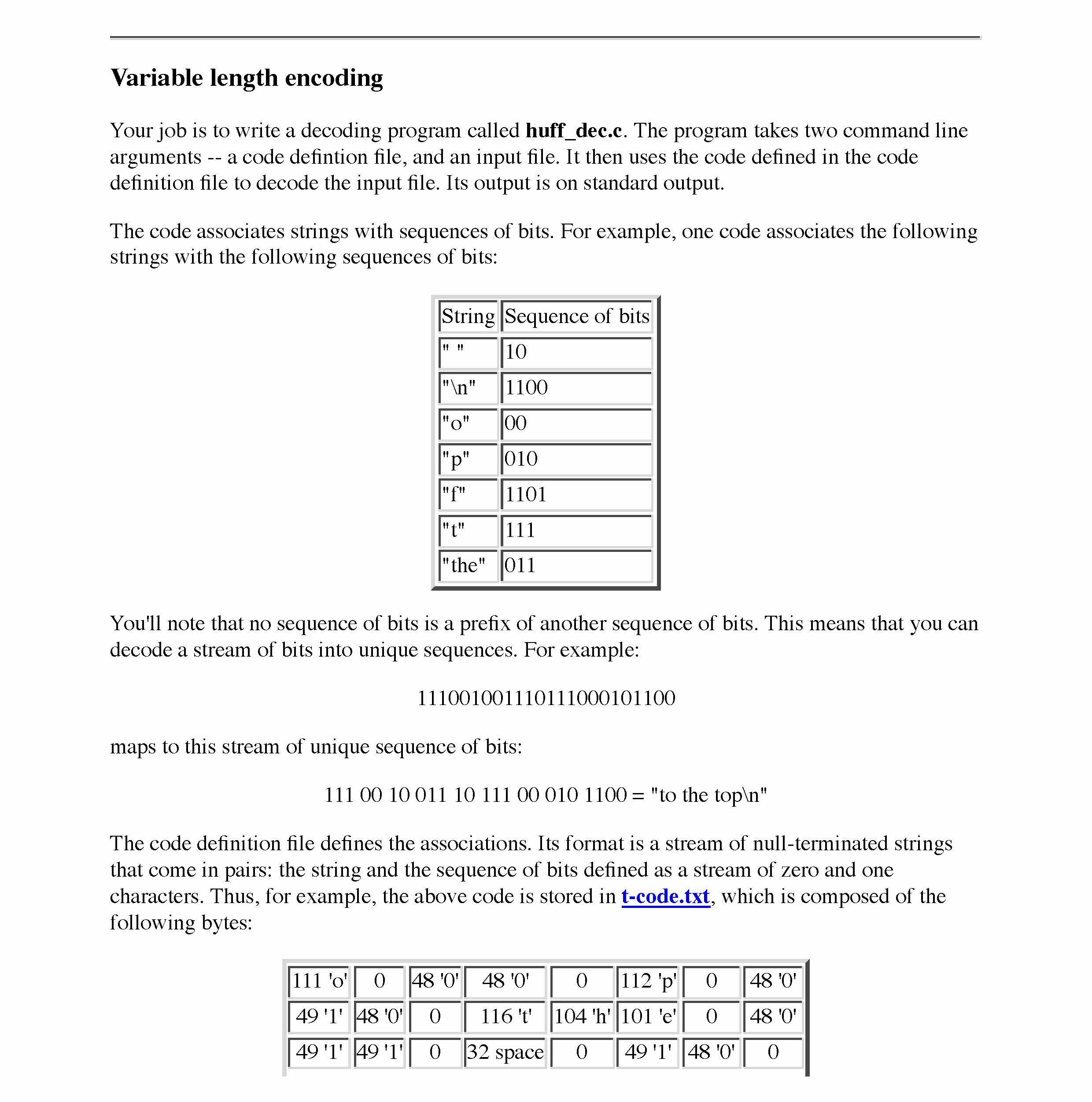 Variable length encoding Your job is to write a decoding program c...