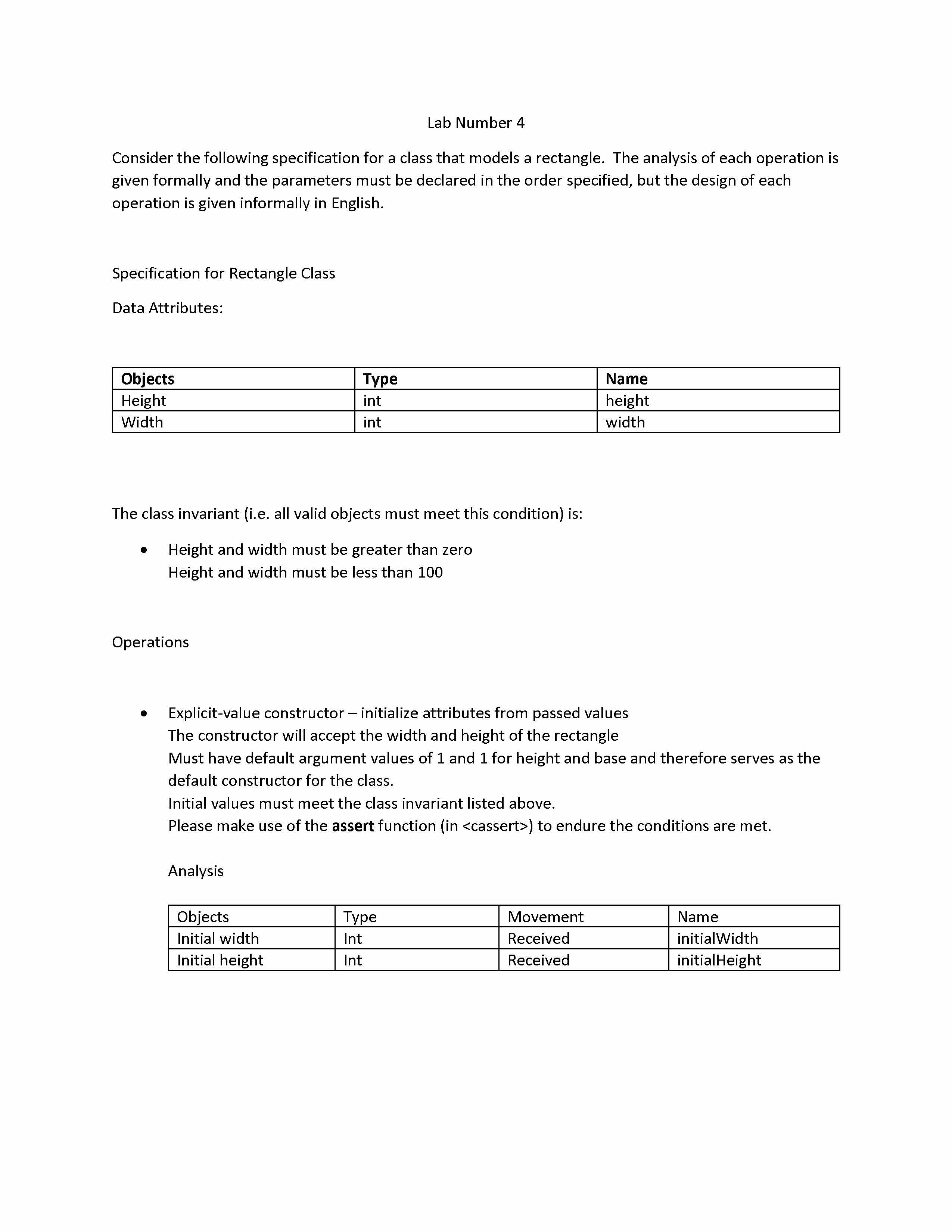 Lab Number 4 Consider the following specification for a class that...