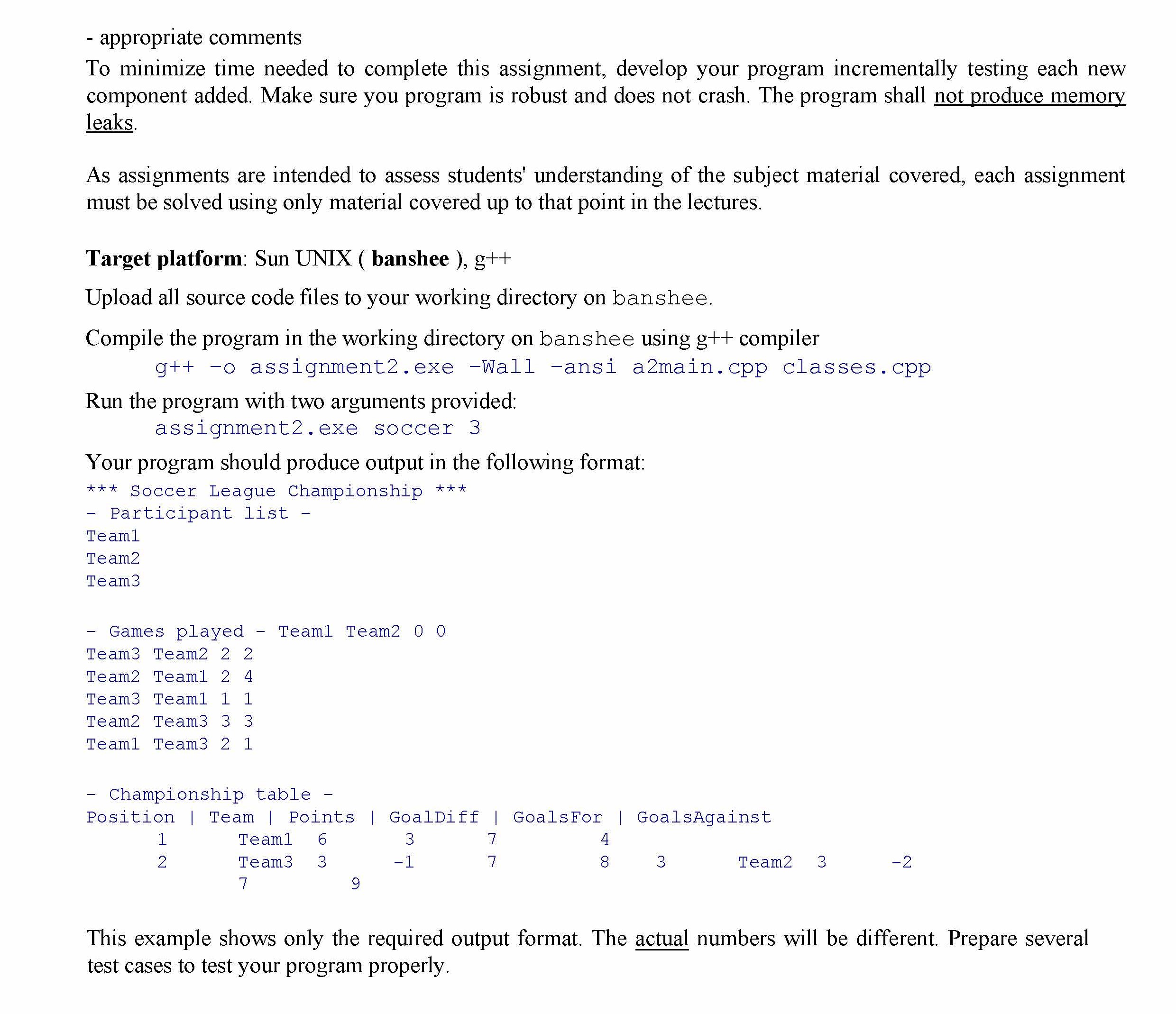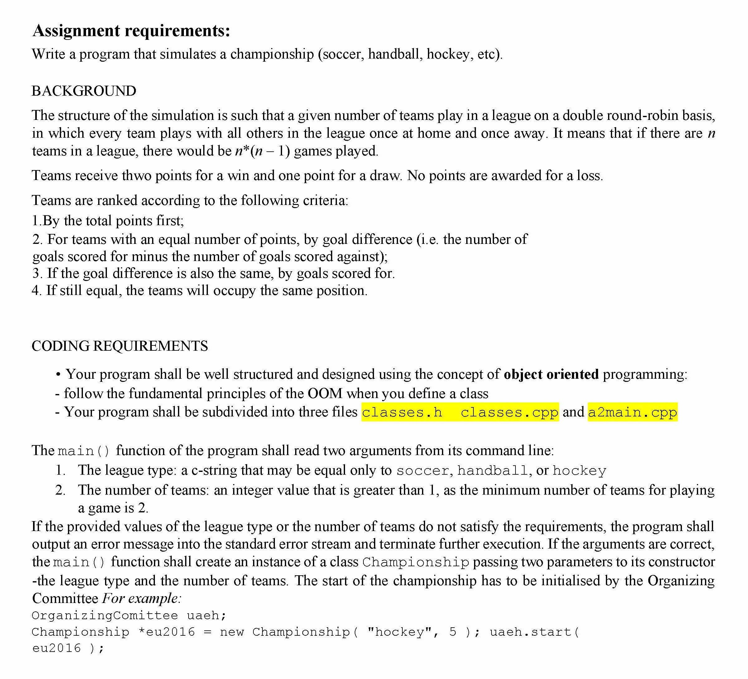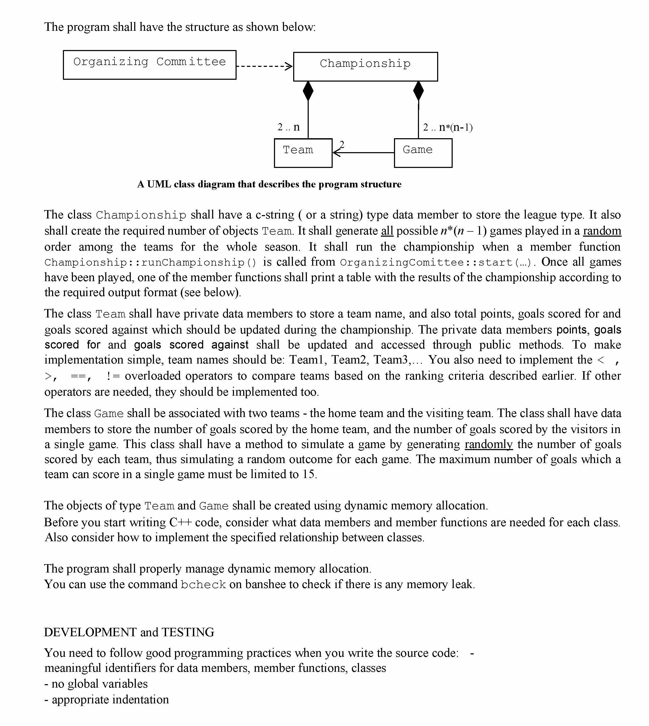 Assignment requirements: Write a program that simulates a champion...
