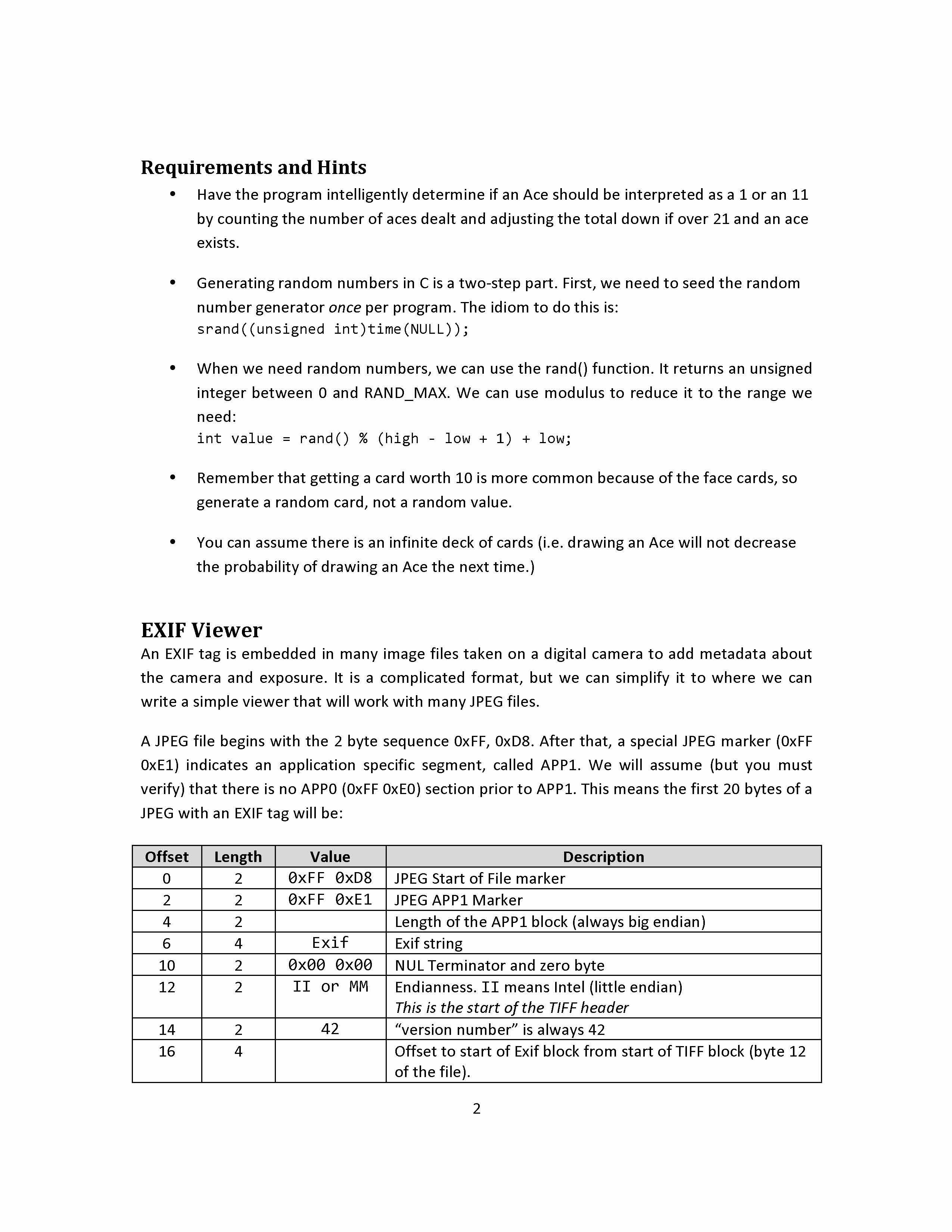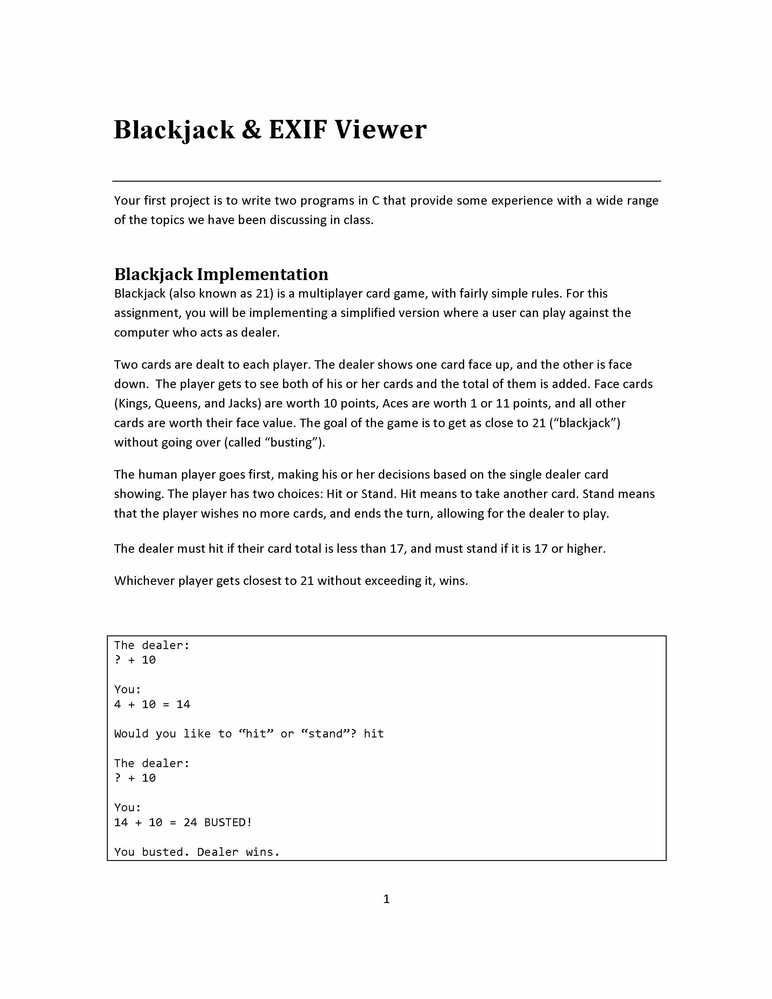 1 Blackjack & EXIF Viewer Your first project is to write two...