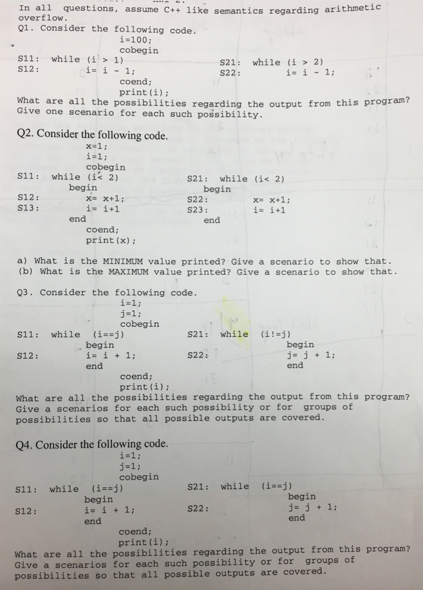 In all questions, assume C++ like semantics regarding arithmetic o...