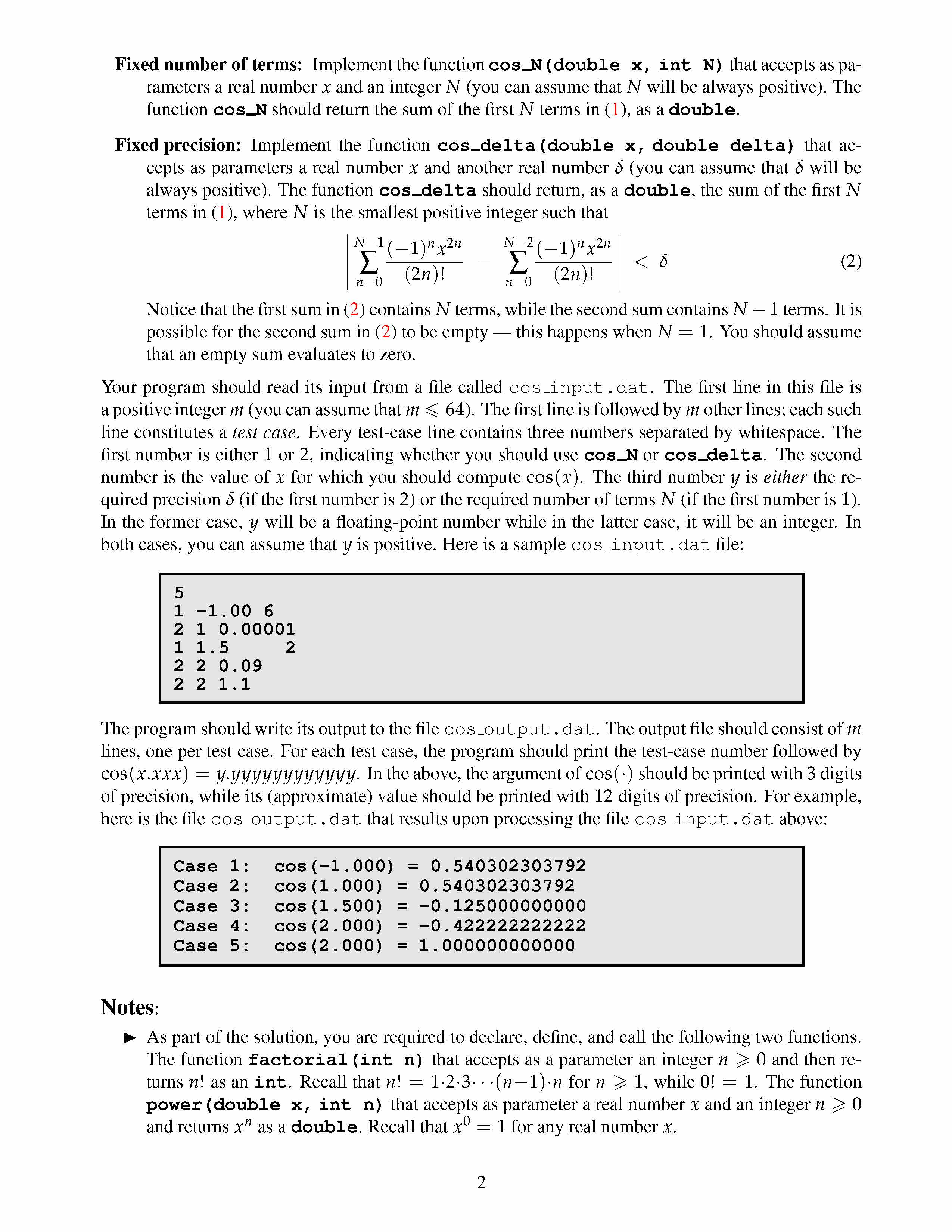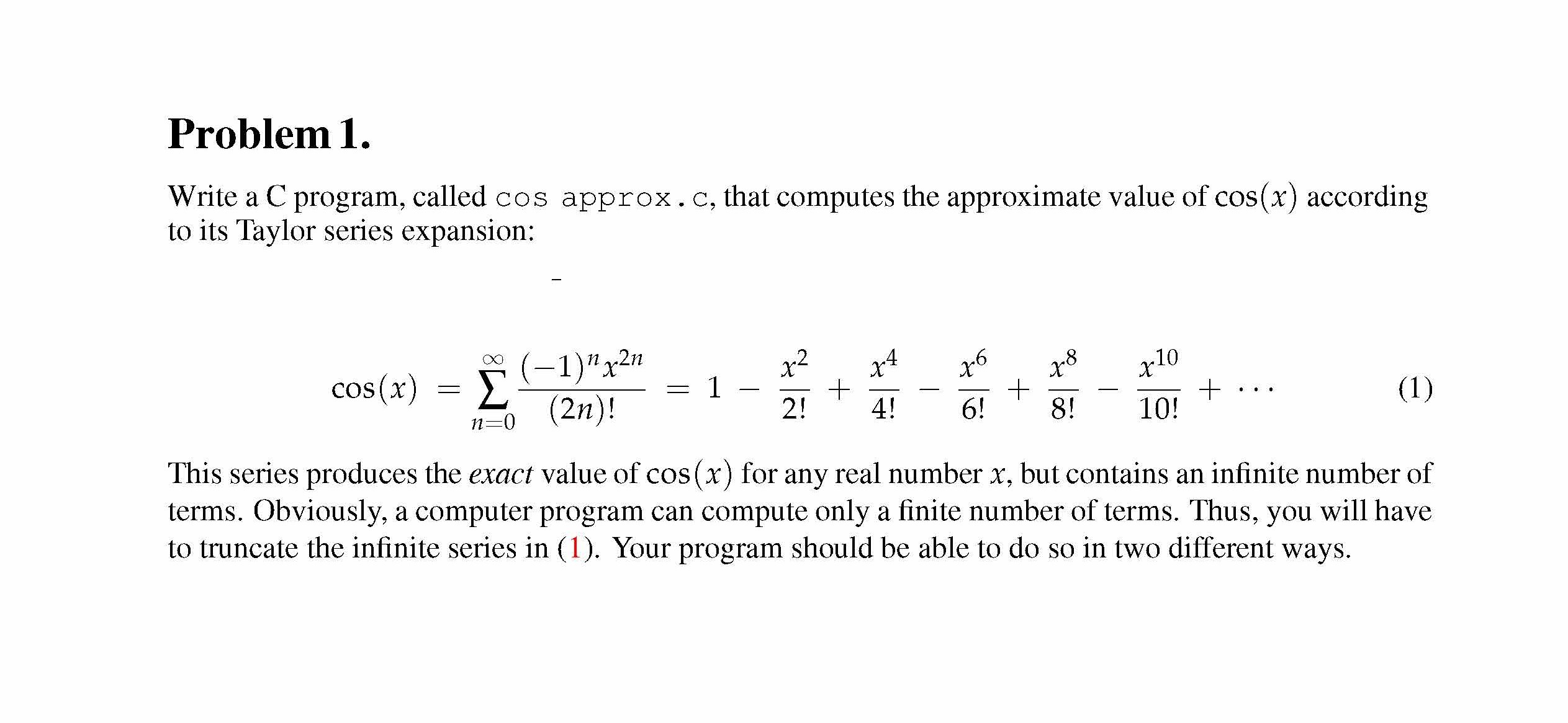 Problem 1. Write a C program, called COS approx. C, that computes ...
