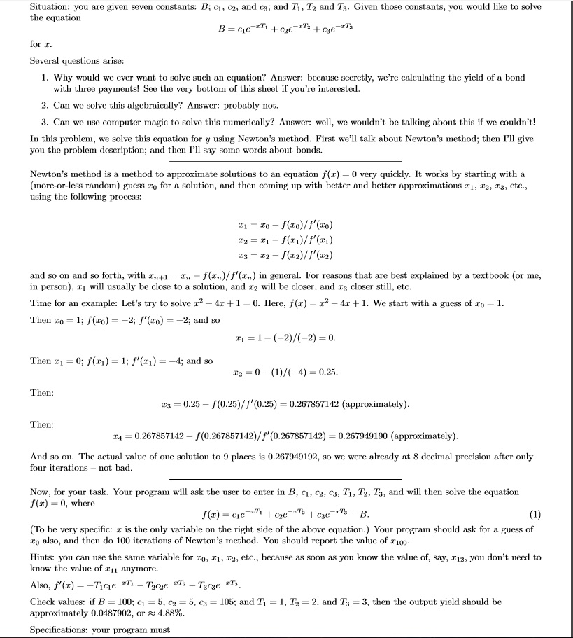 Situation: you are given seven constants: B; C1, C2, and and T1, T2...