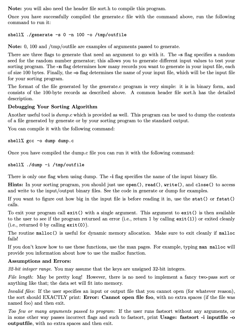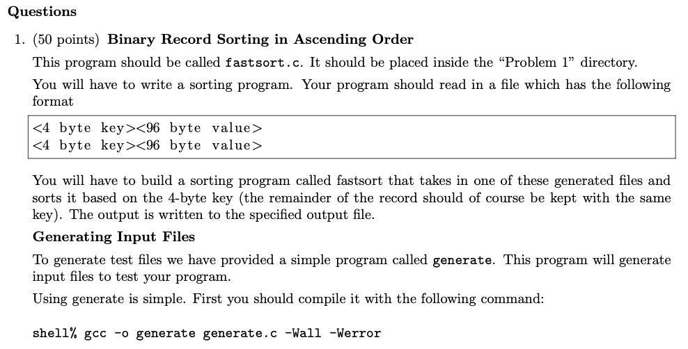 Questions 1. (50 points) Binary Record Sorting in Ascending Order ...