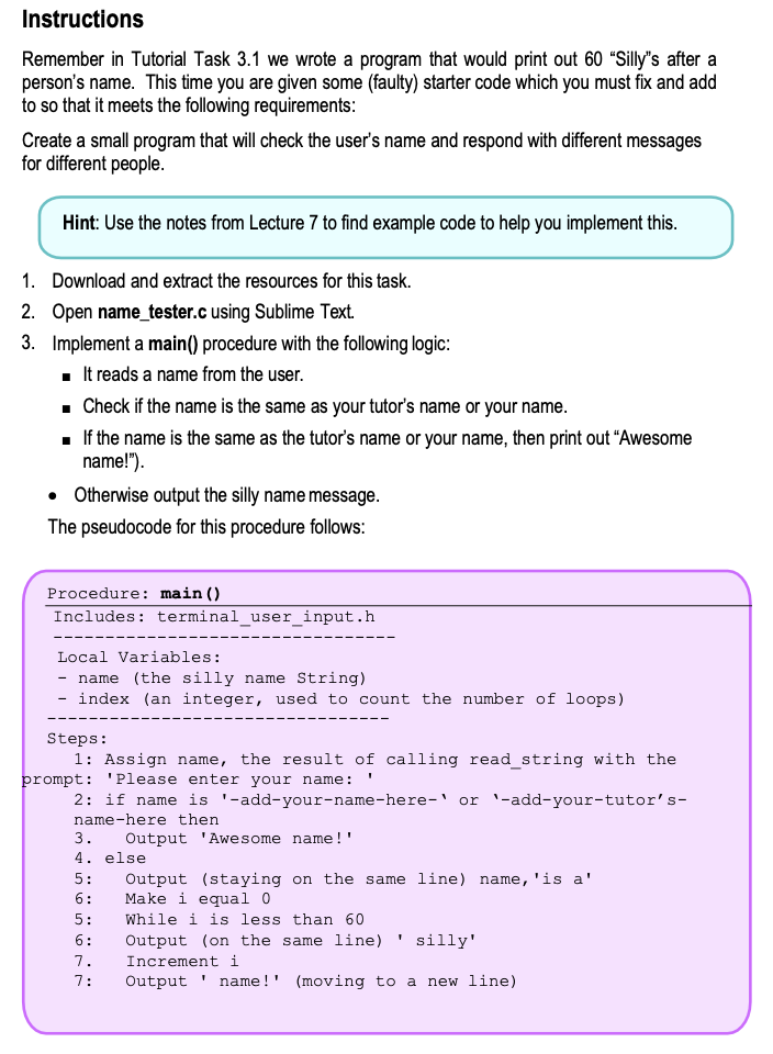 Instructions Remember in Tutorial Task 3.1 we wrote a program that...