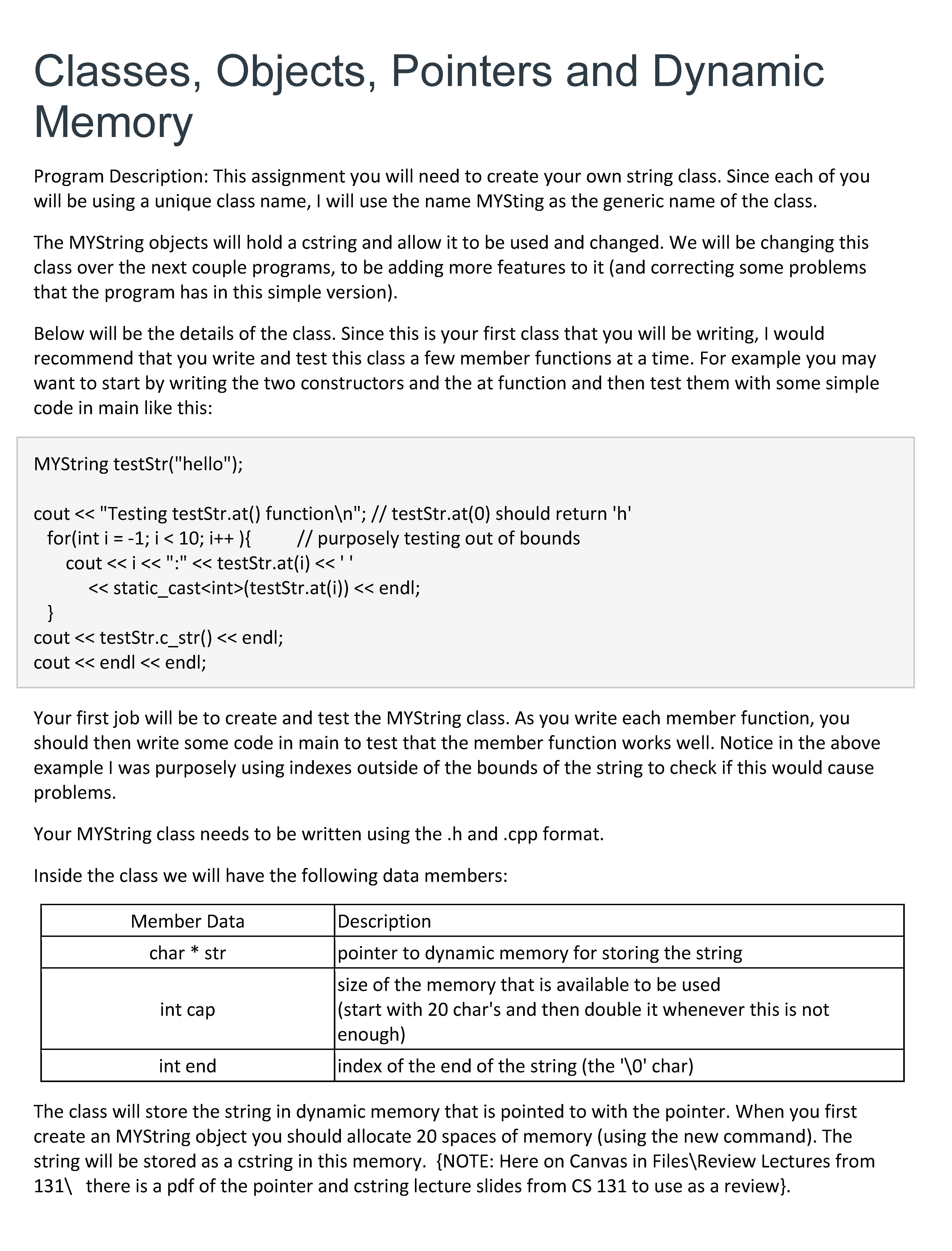 Classes, Objects, Pointers and Dynamic Memory Program Description...