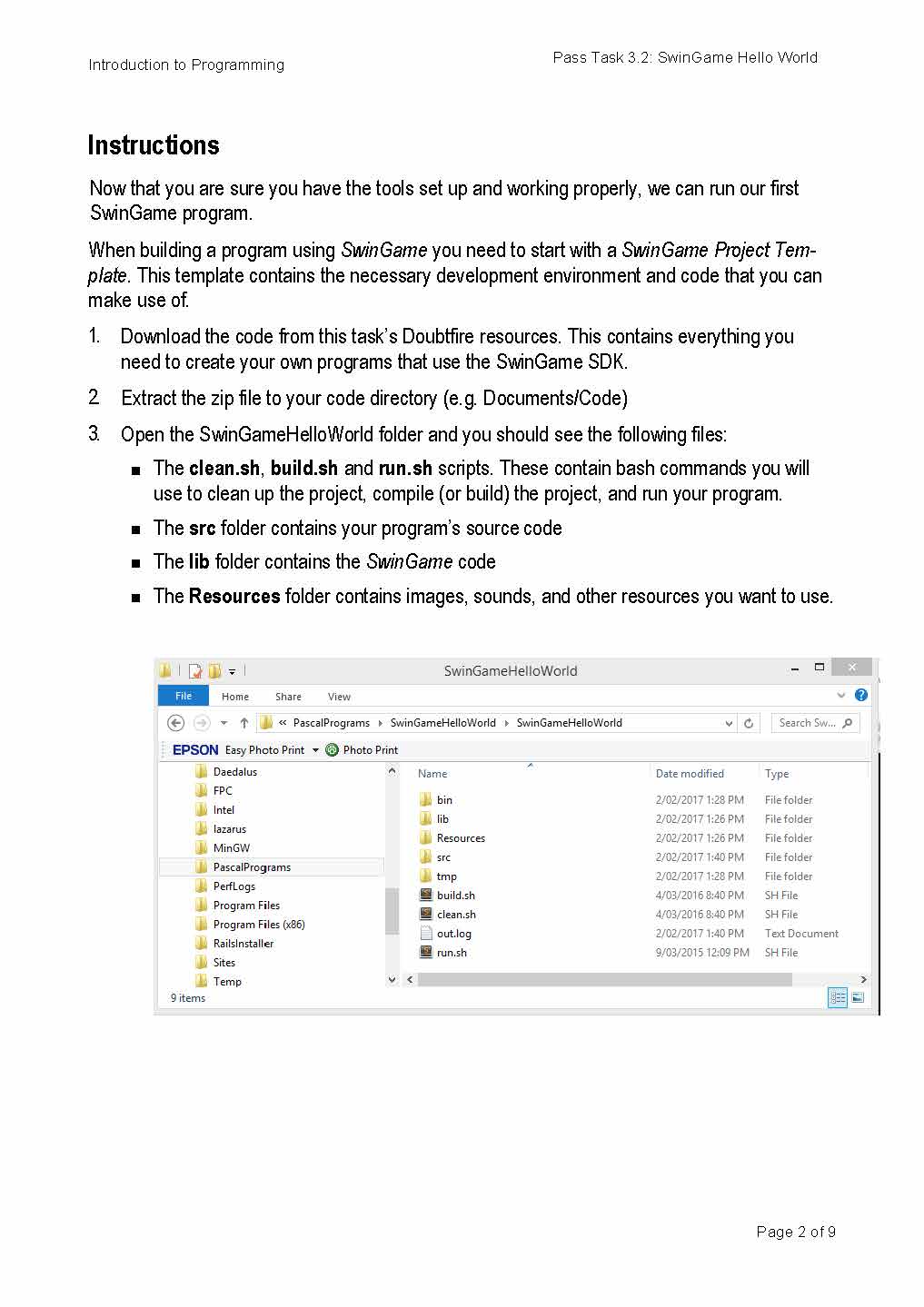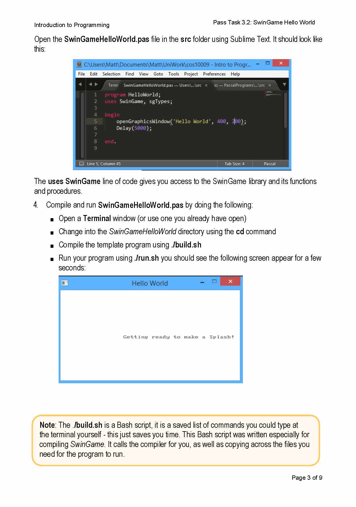 Introduction to Programming Pass Task 3.2: SwinGame Hello World ...