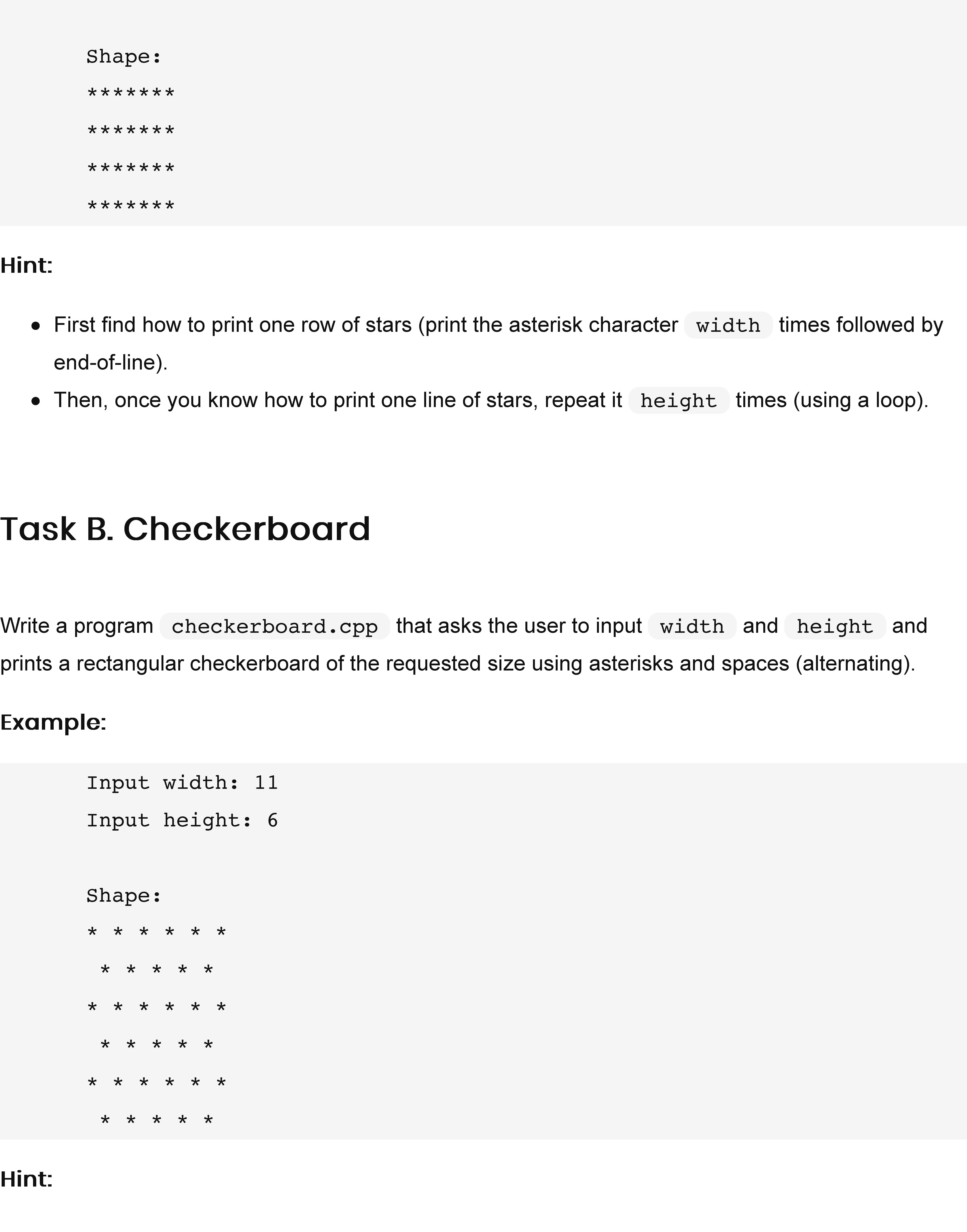 Printing Shapes Task A. Box Write a program box.cpp that asks the...