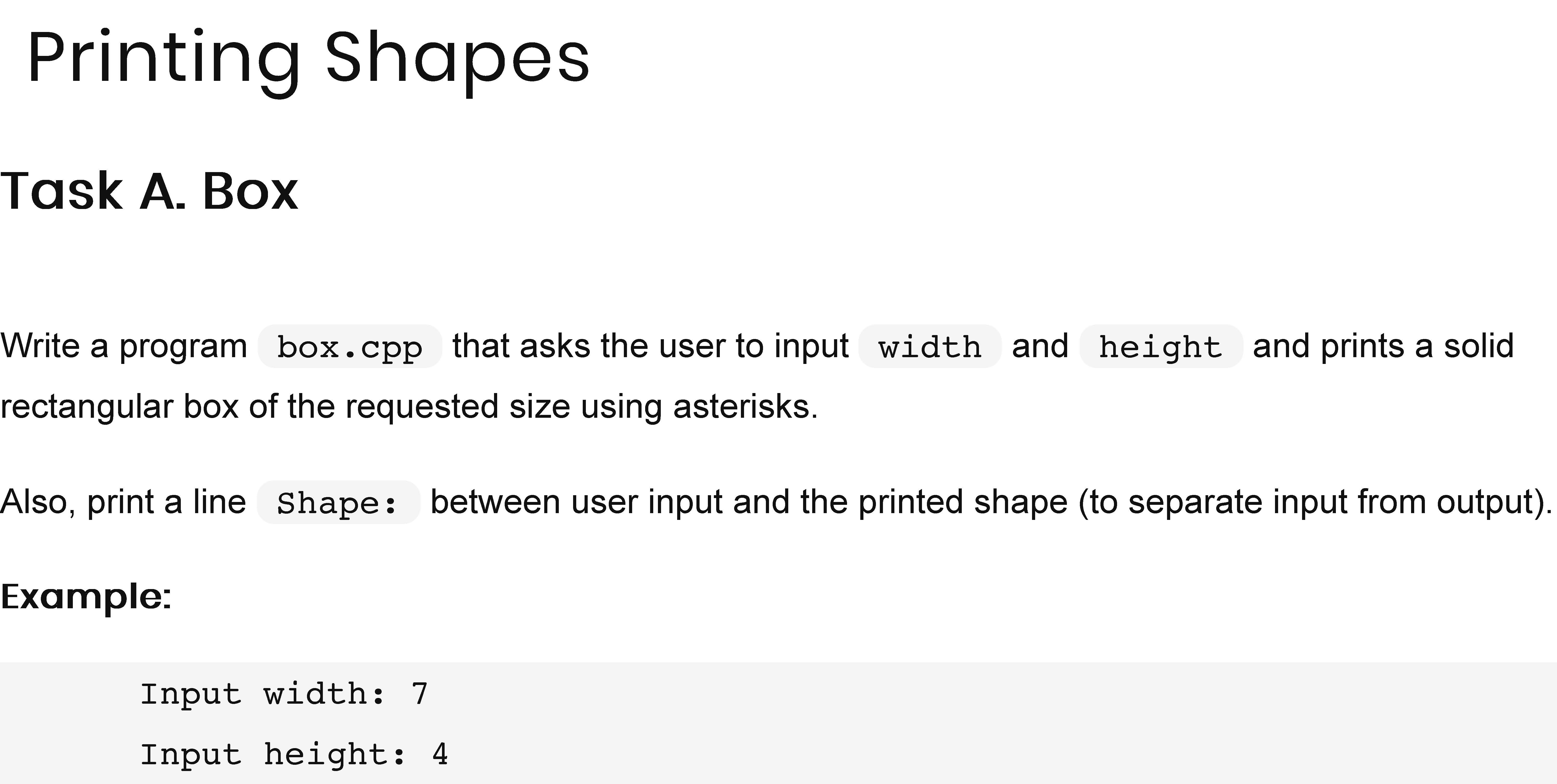 Printing Shapes Task A. Box Write a program box.cpp that asks the ...