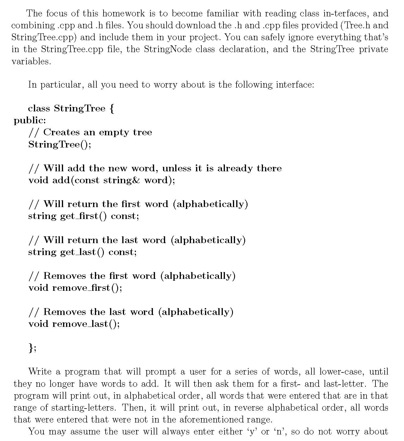The focus of this homework is to become familiar with reading class...