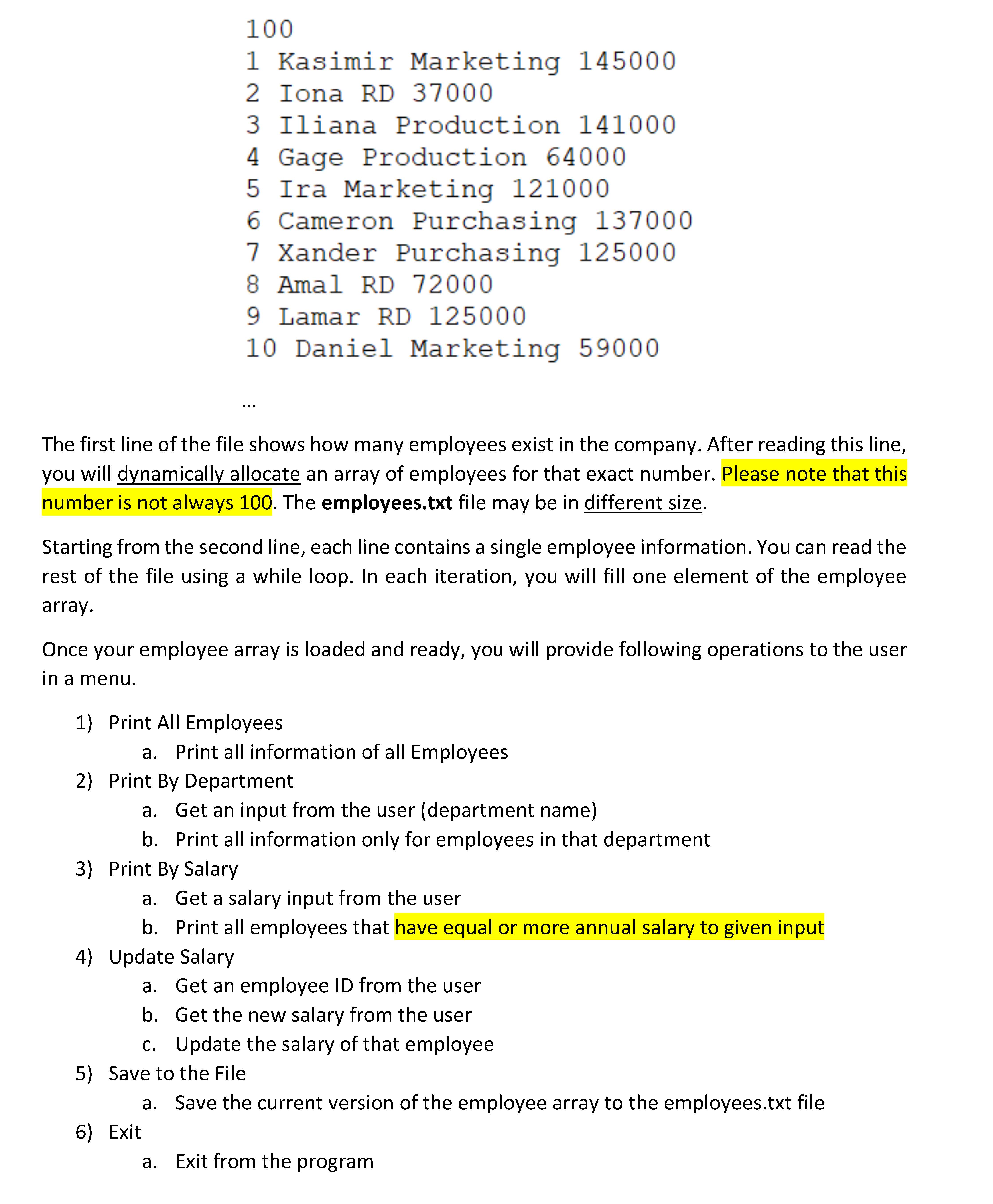 In this program, you will manage employees in a company. You will d...