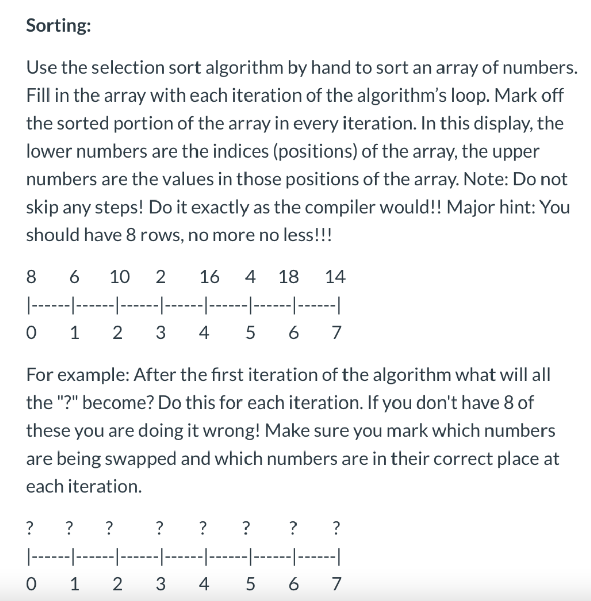 Sorting: Use the selection sort algorithm by hand to sort an array...
