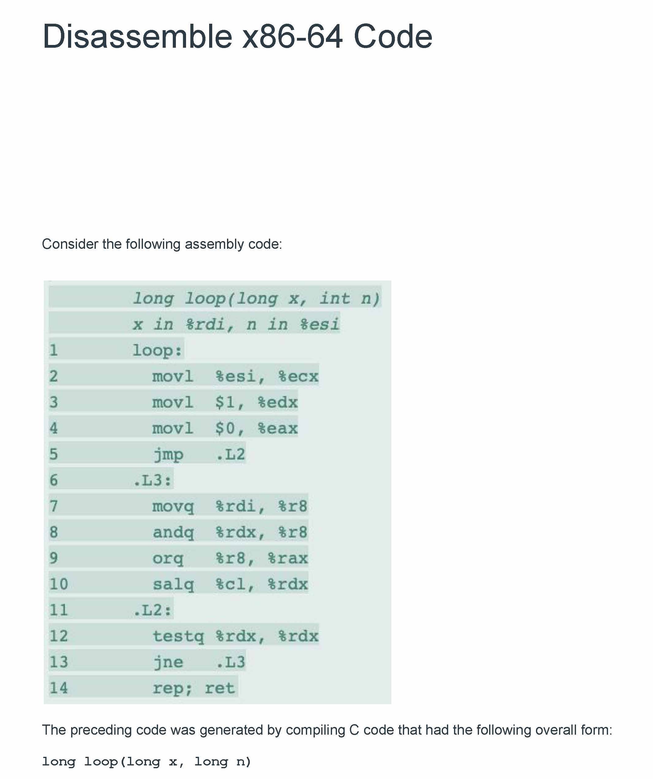 Disassemble x86-64 Code Consider the following assembly code: The...