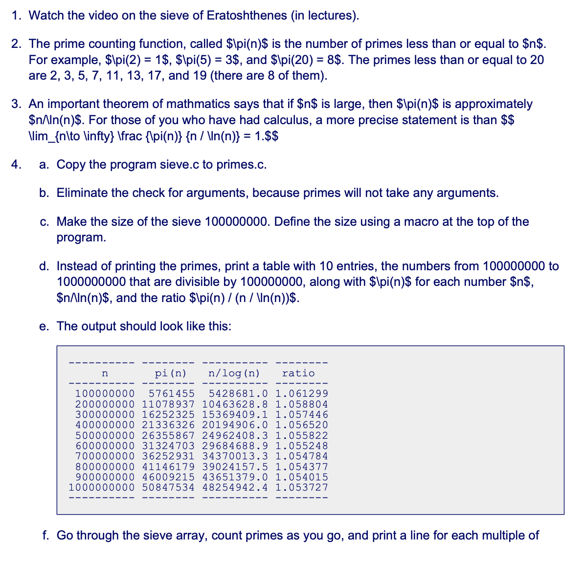 1. Watch the video on the sieve of Eratoshthenes (in lectures). 2....