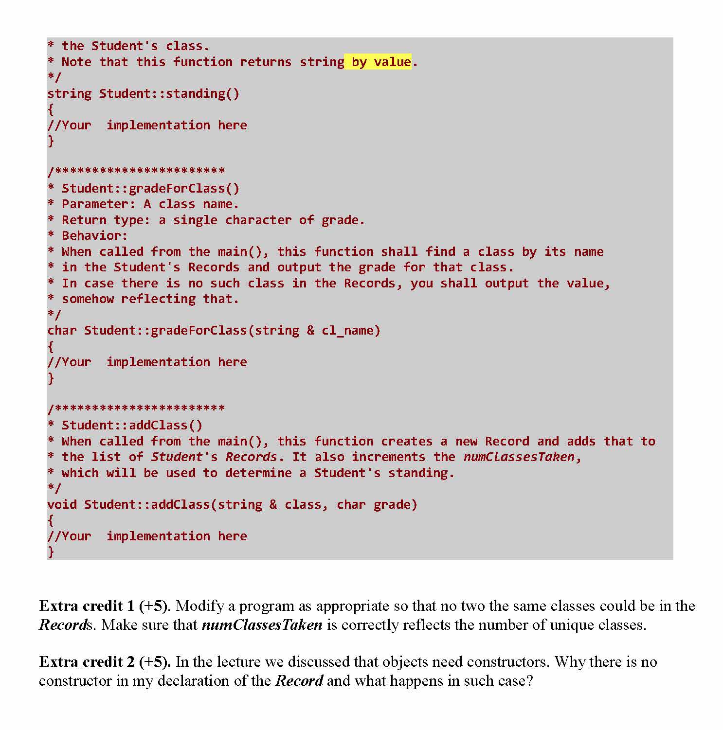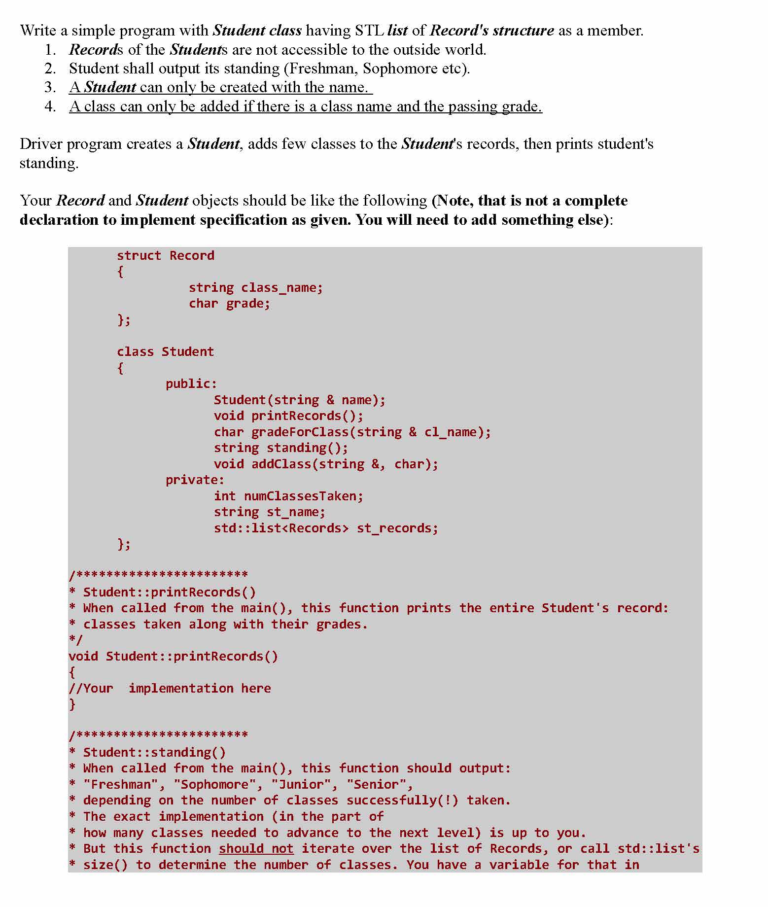Write a simple program with Student class having STL list of Record...