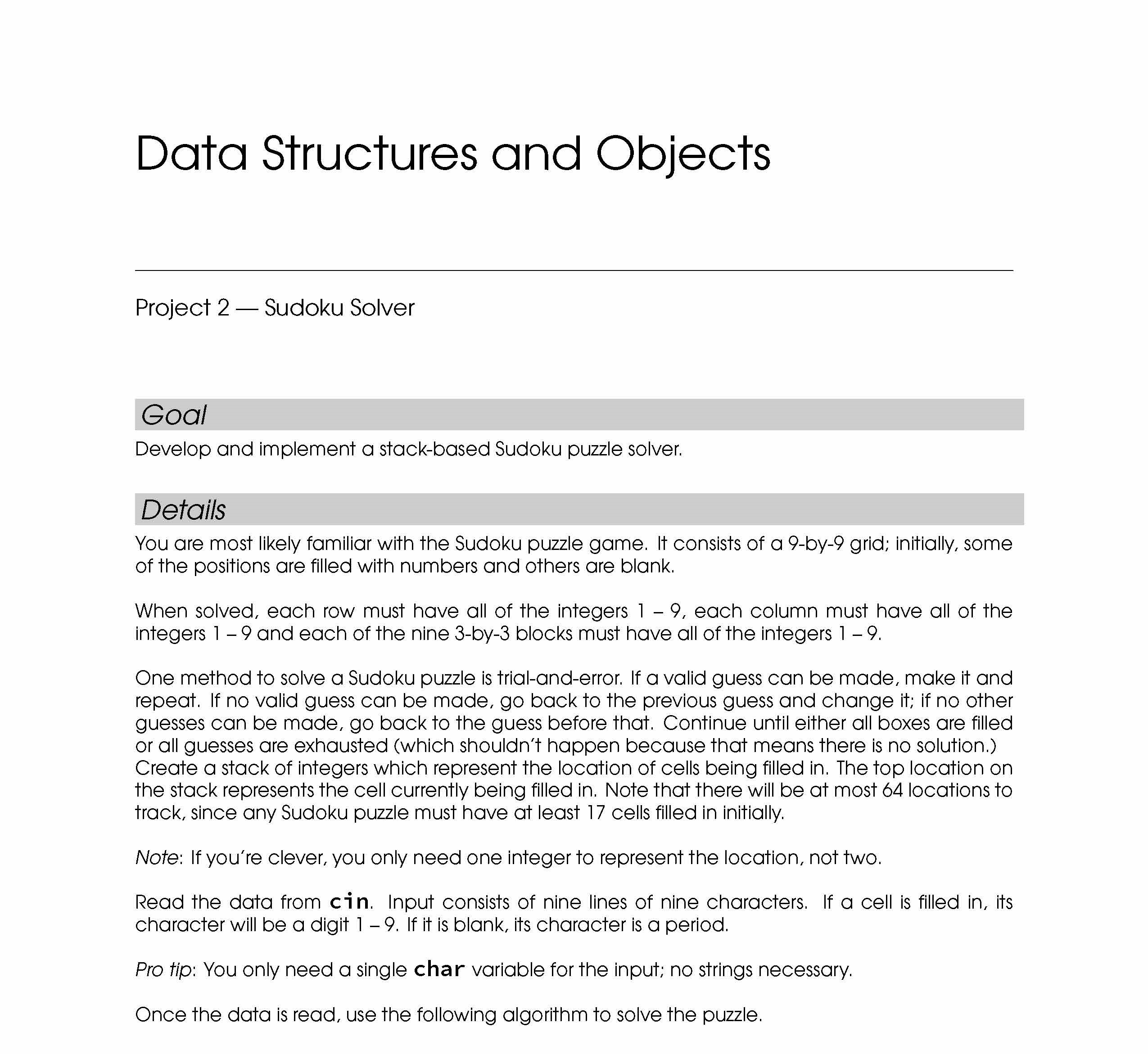 Data Structures and Objects Project 2 — Sudoku Solver Goal...