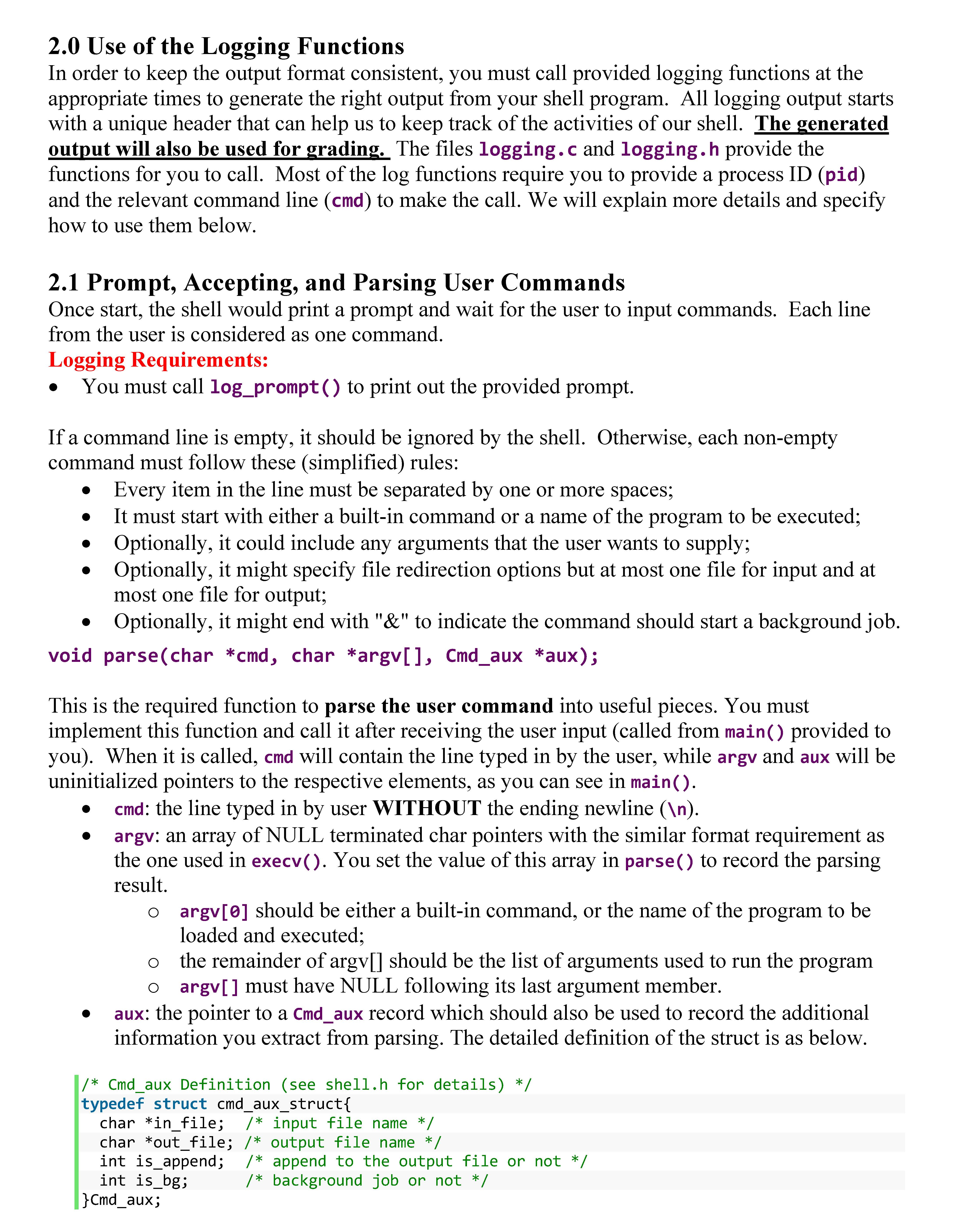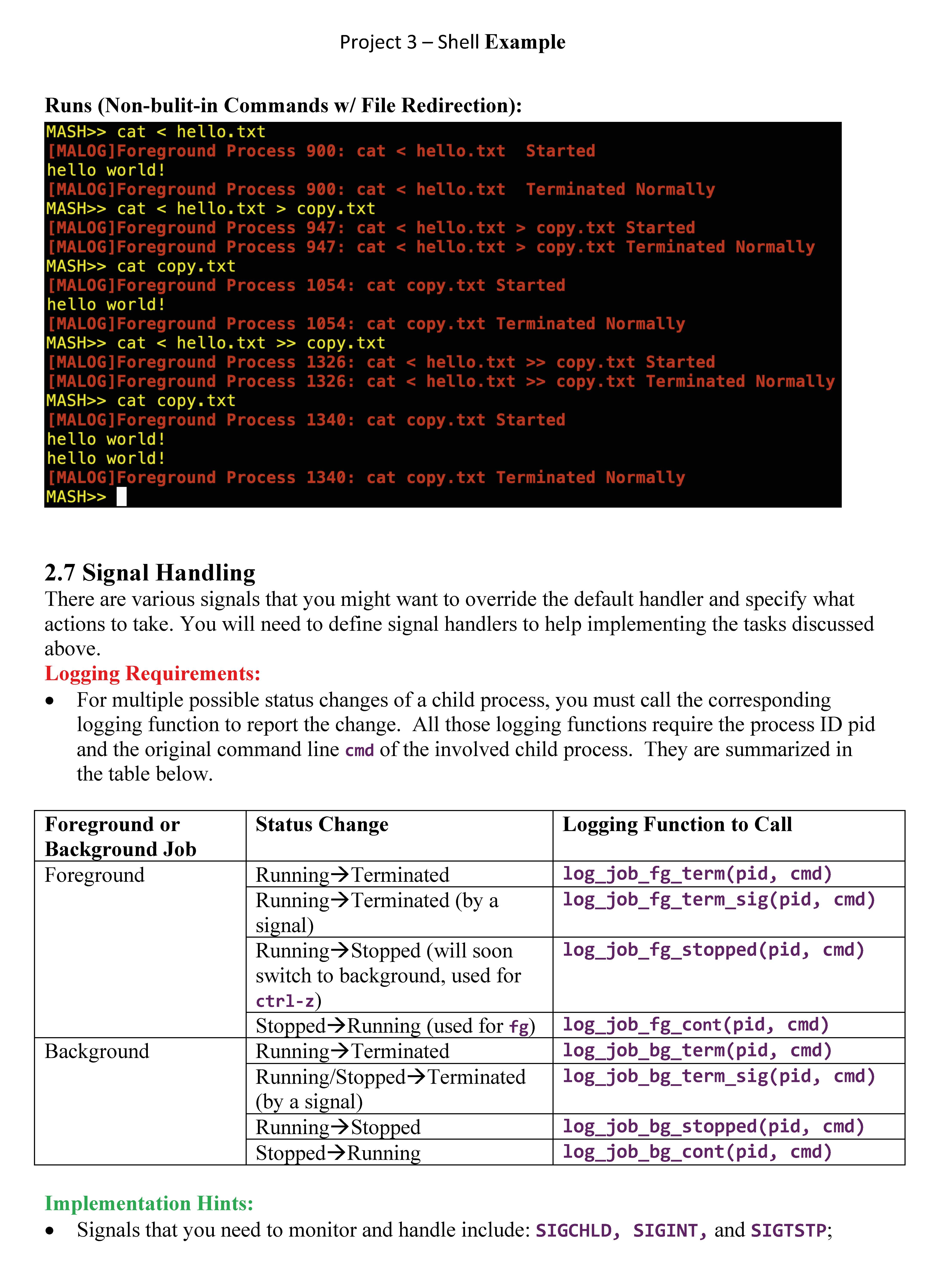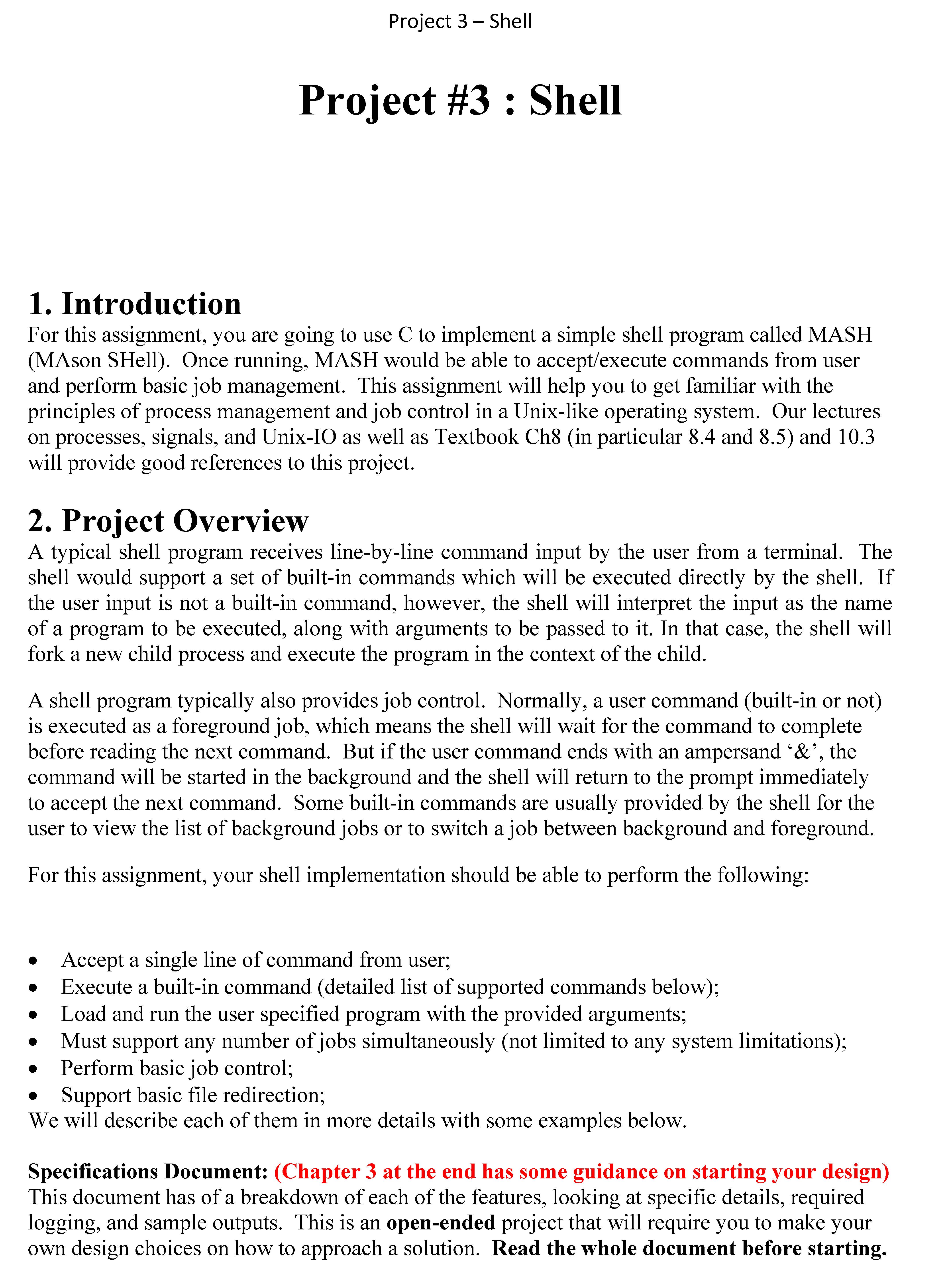Project 3 – Shell Project #3 : Shell 1. Introduction For ...