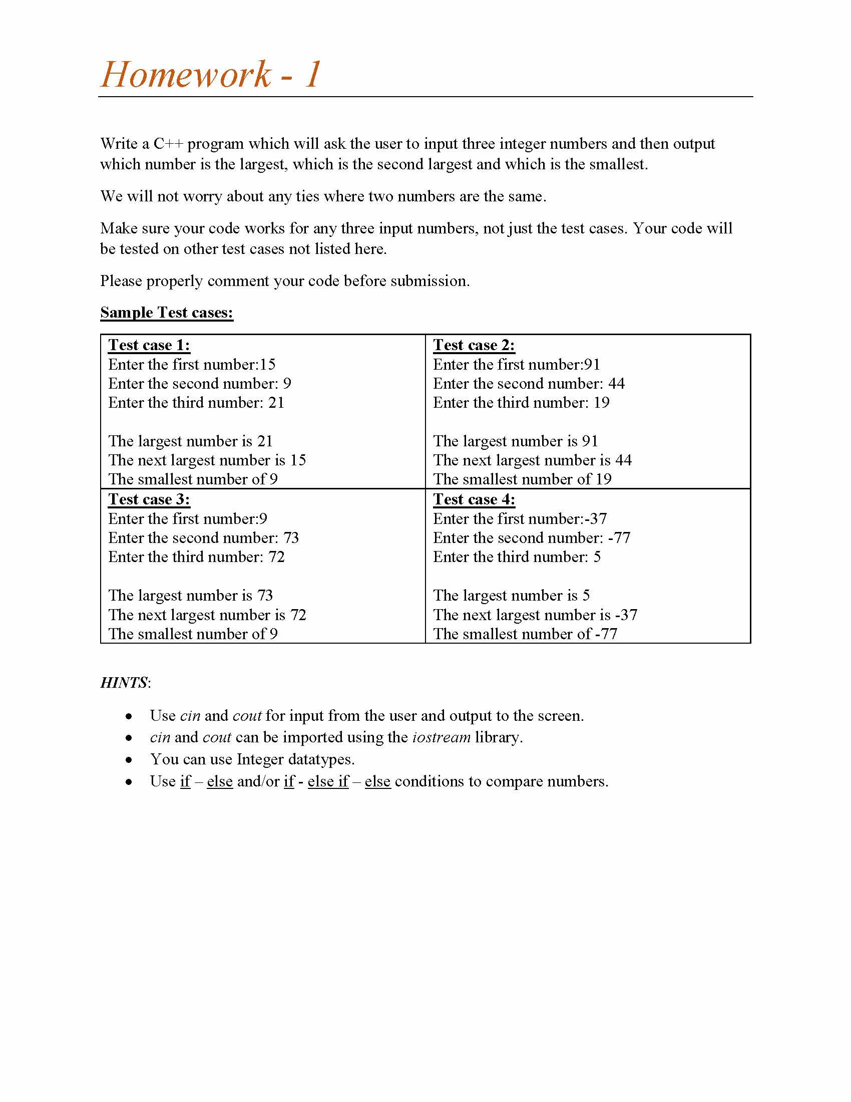 Homework 1 Write C++ program which will ask the user to input thre...
