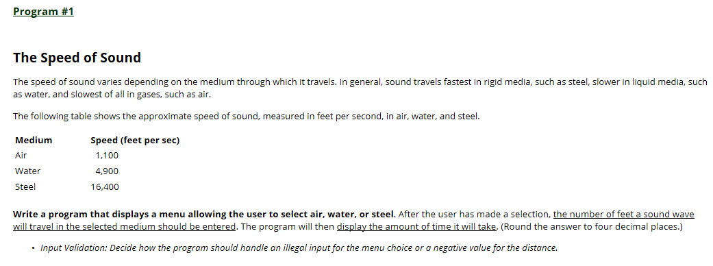 Program #1 The Speed of Sound The speed of sound varies depending...