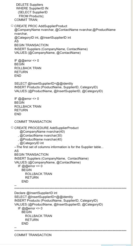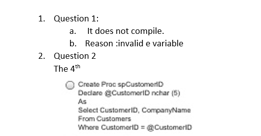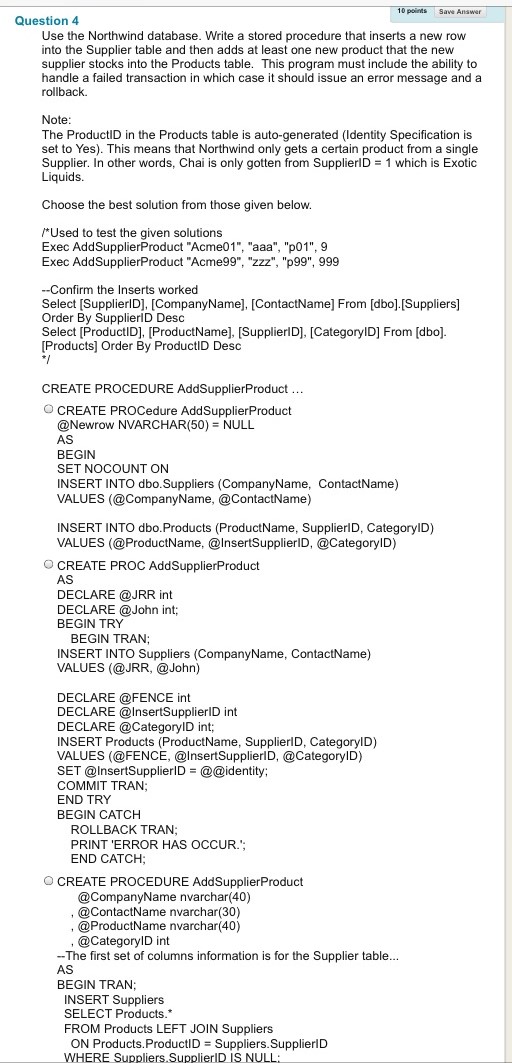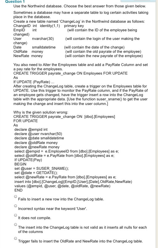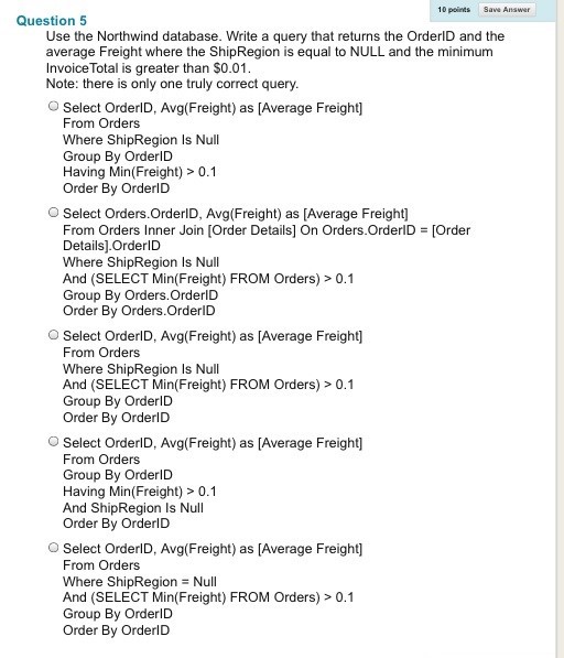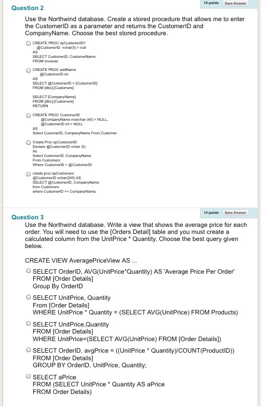 Question 1 Use the Northwind database. Choose the best answer from...