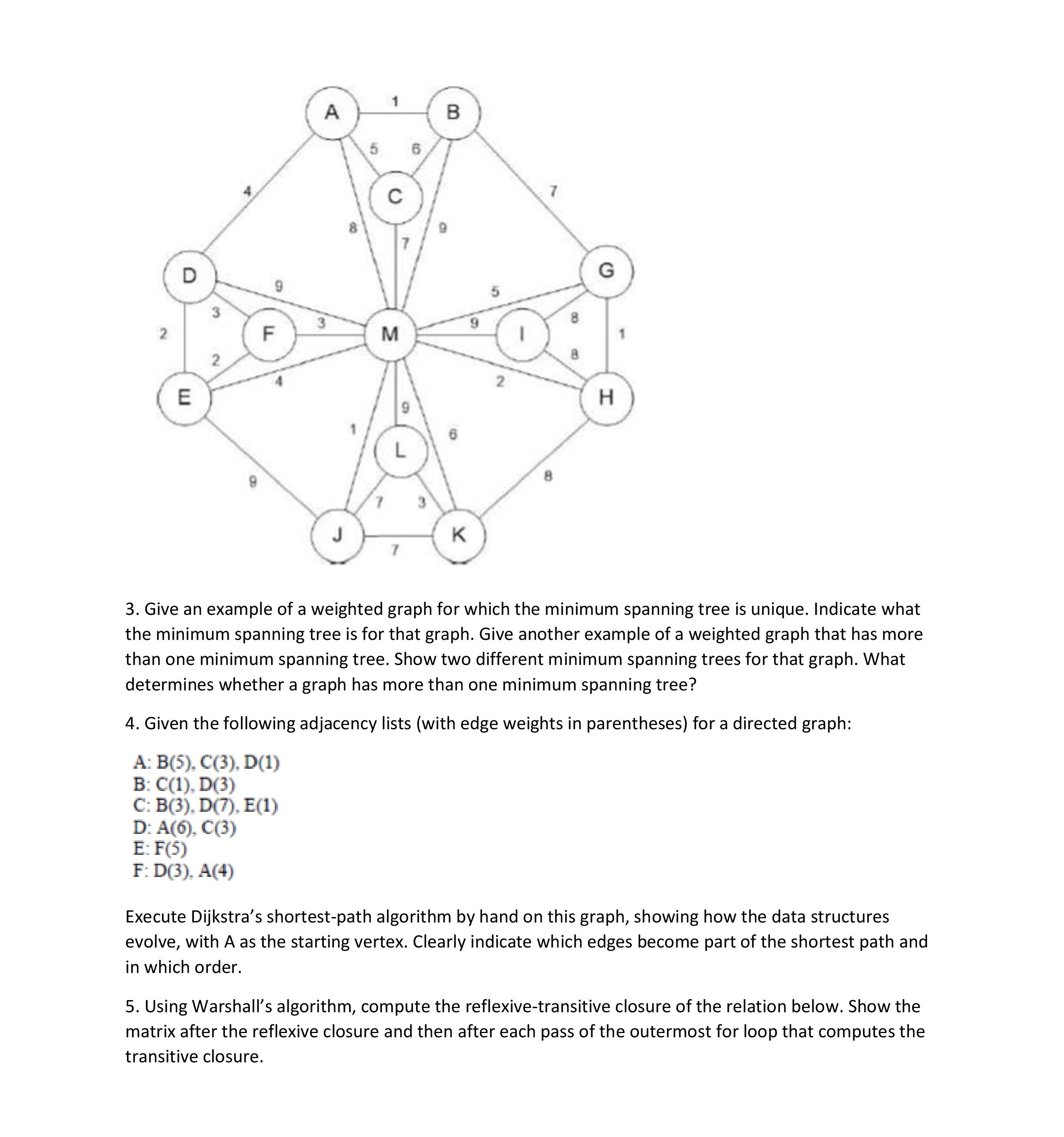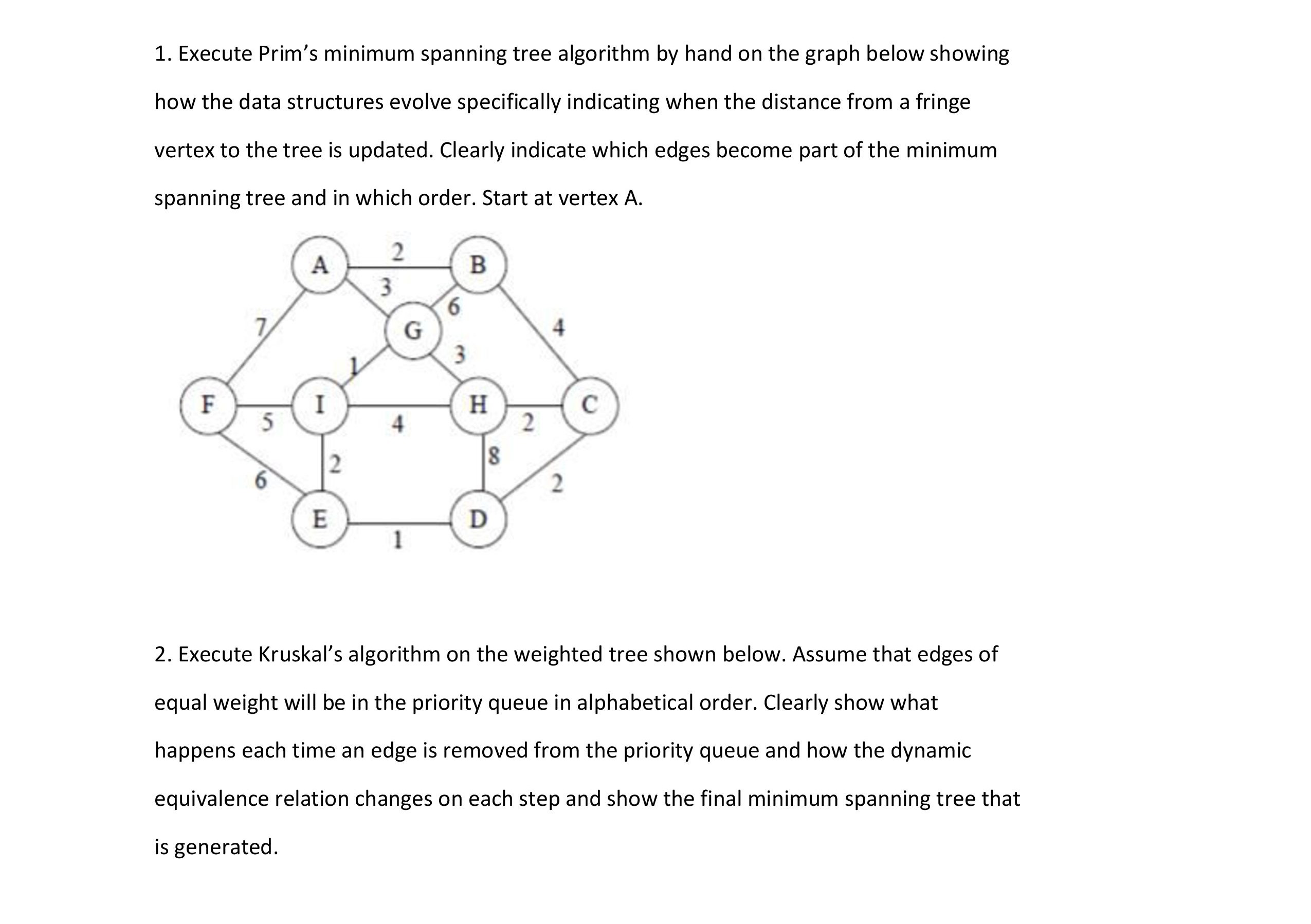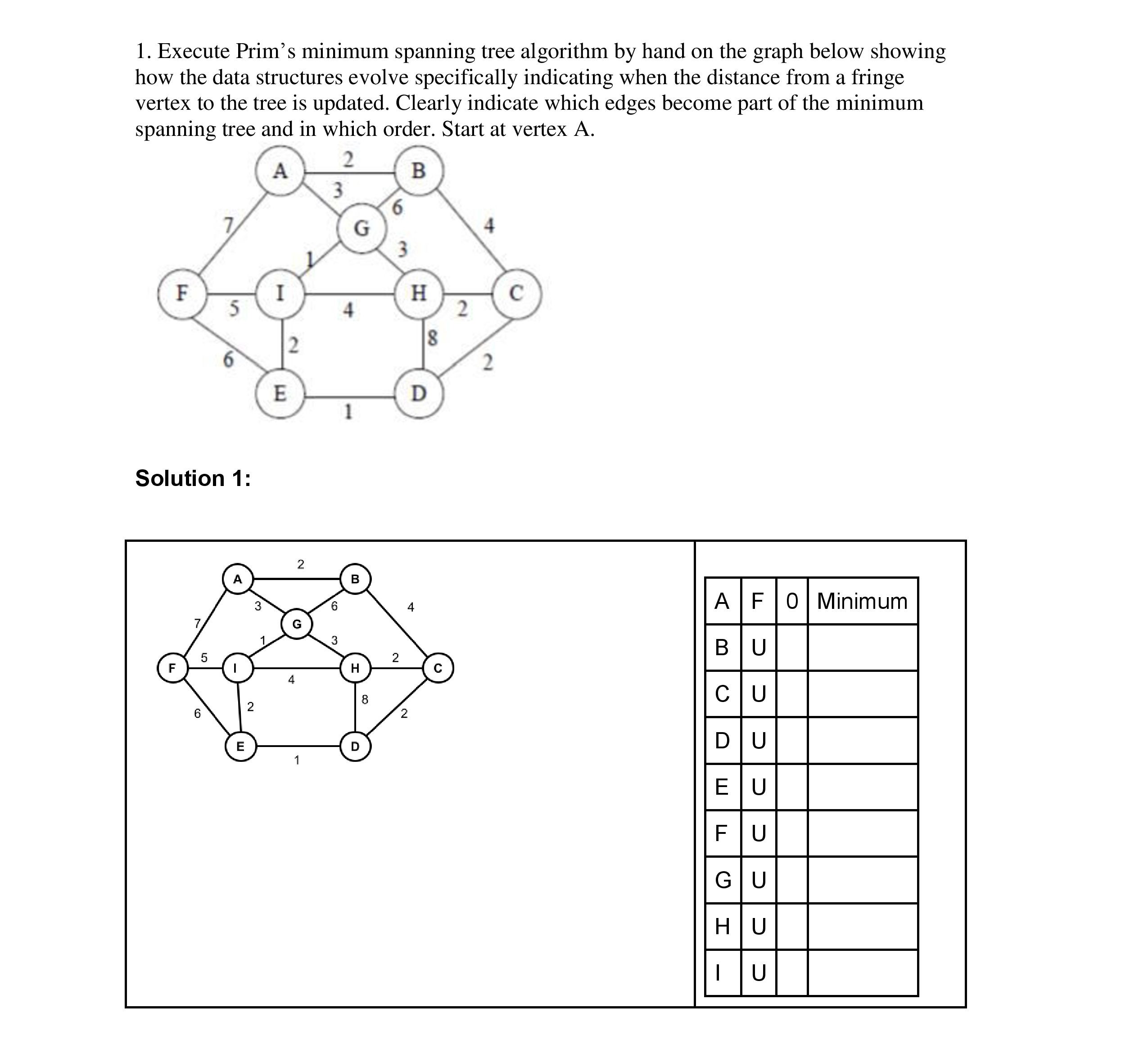 1. Execute Prim's minimum spanning tree algorithm by hand on the gr...