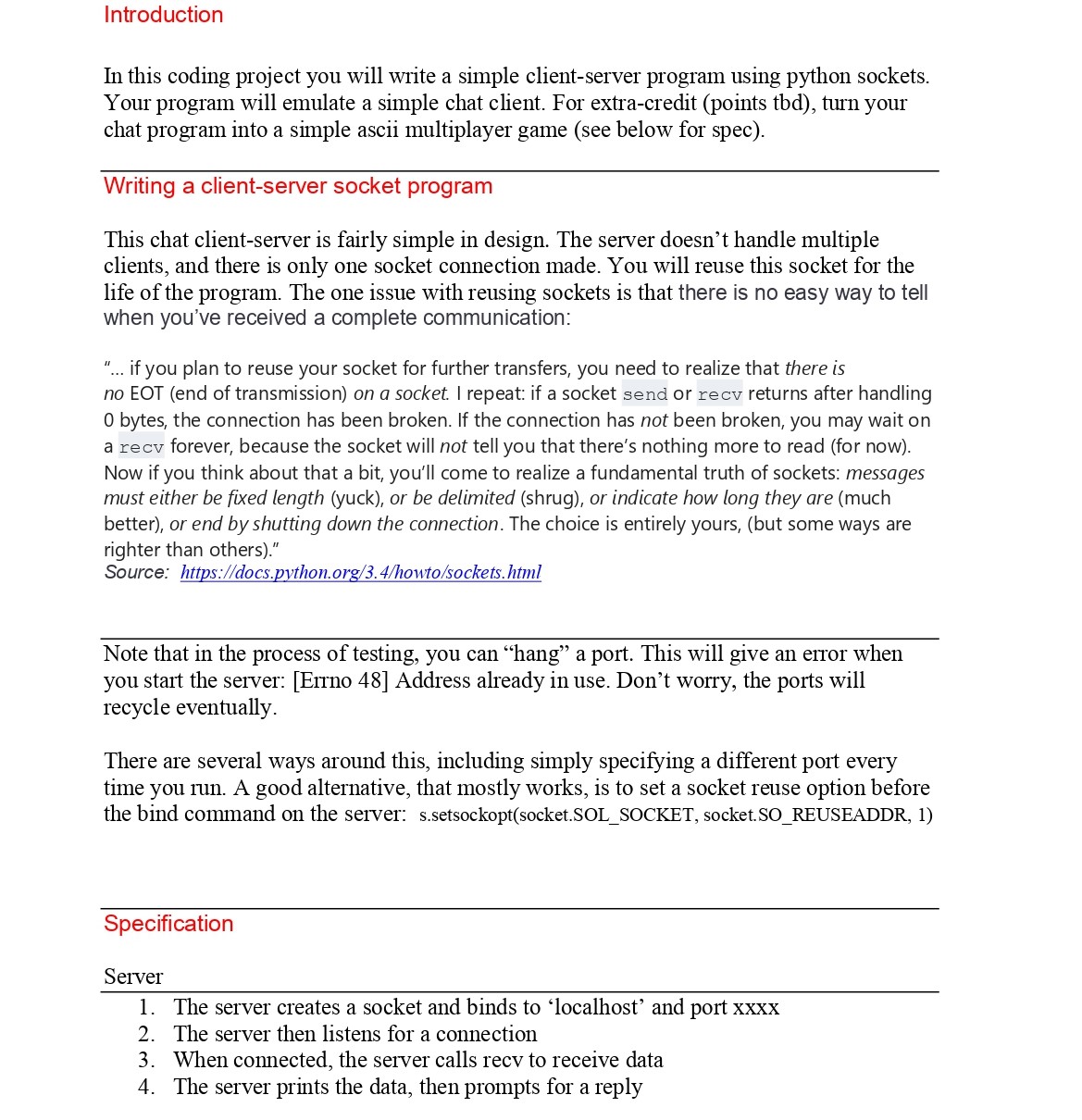 Introduction In this coding project you will write a simple client...