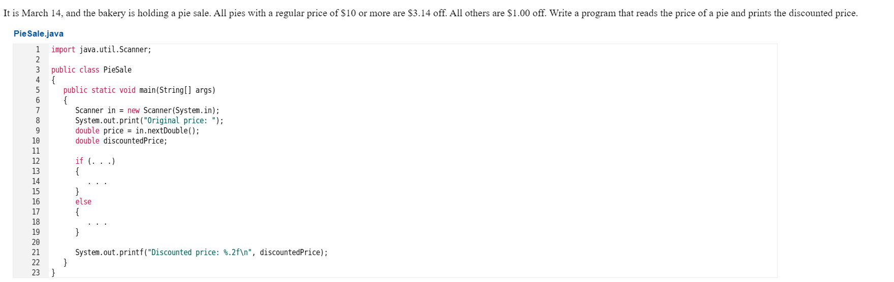 is March 14, and the bakery is holding a pie sale. All pies with a ...