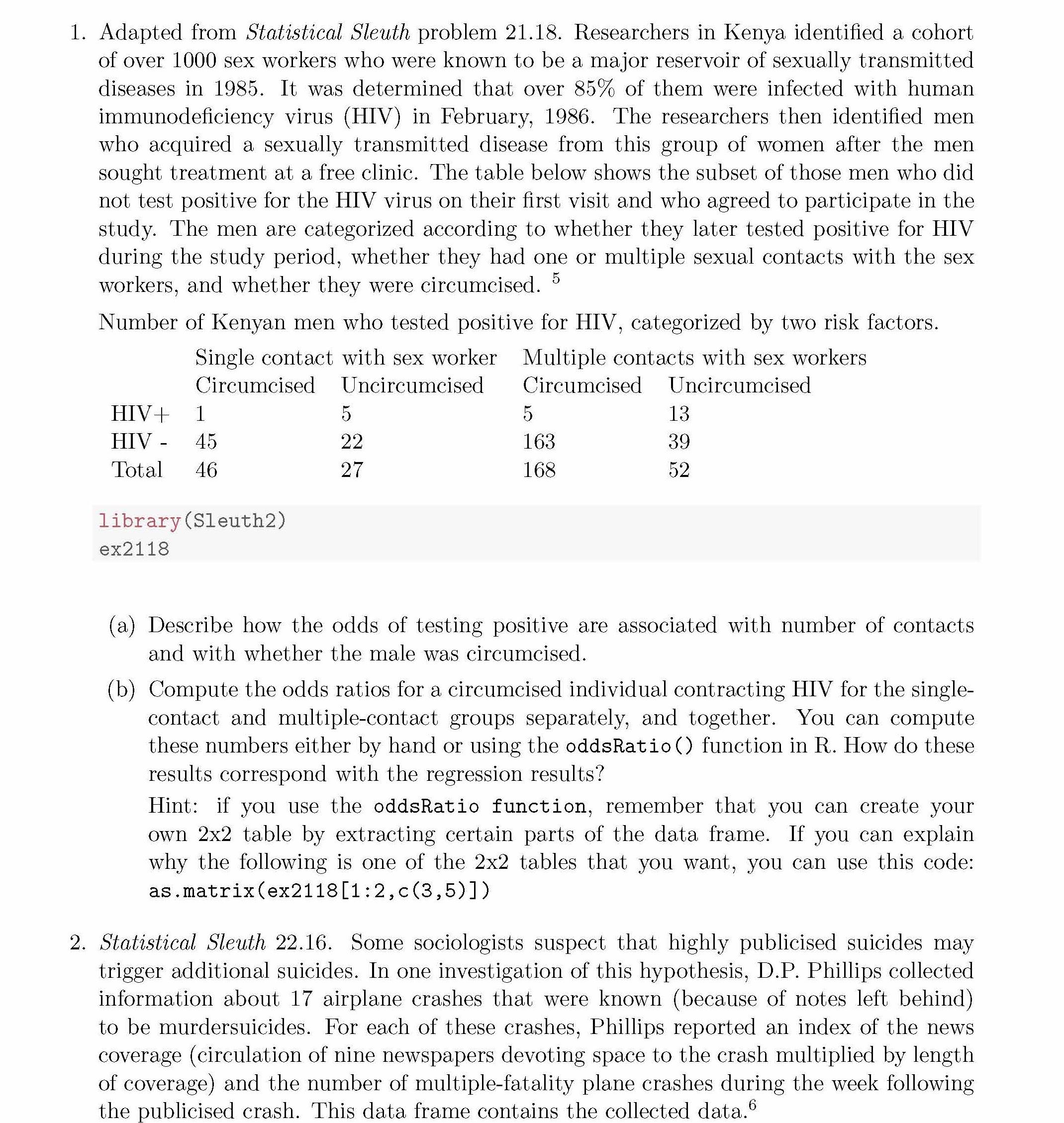 1. Adapted from Statistical Sleuth problem 21.18. Researchers in K...