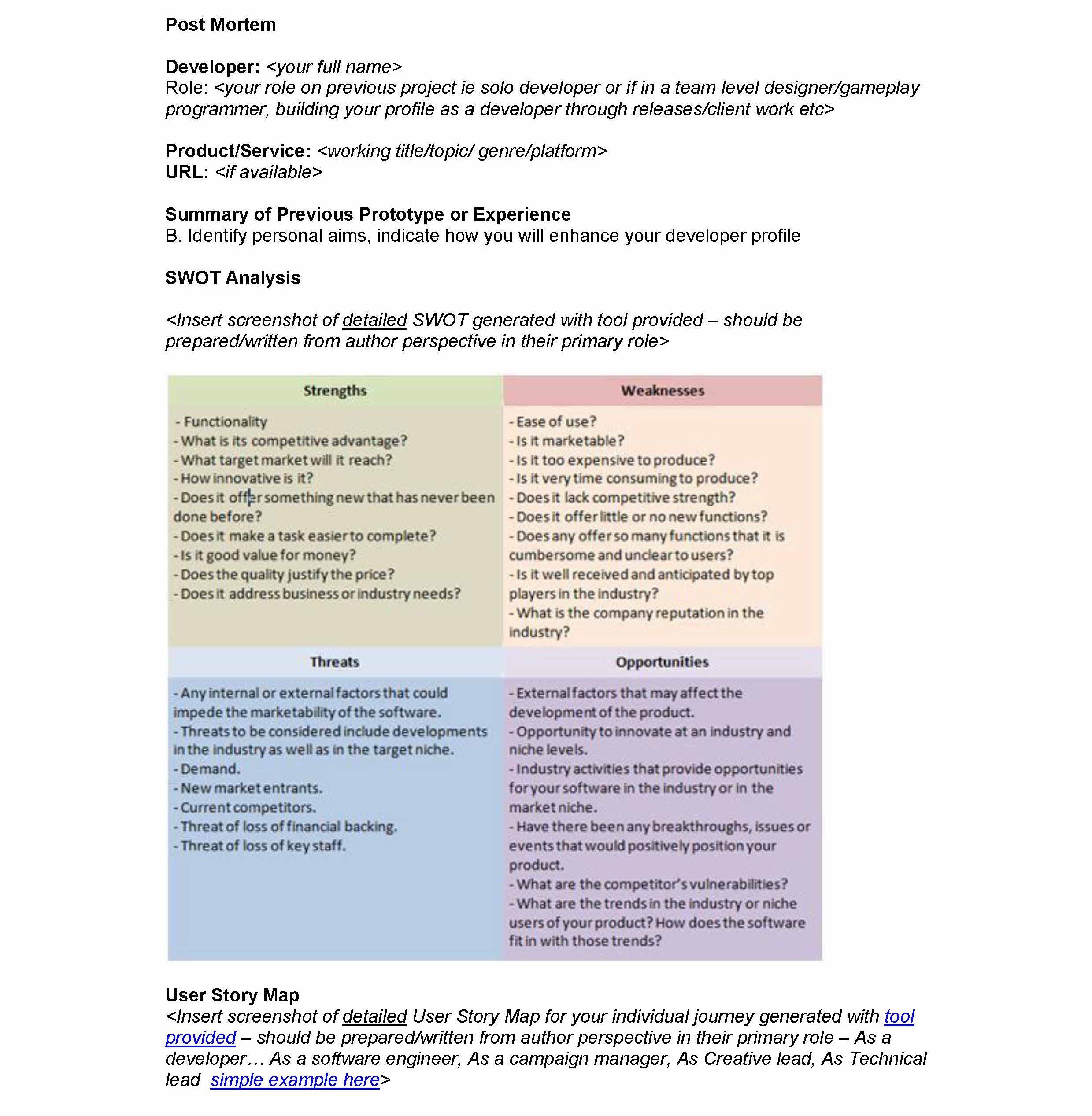 Post Mortem Developer: Role: programmer, building your profile a...