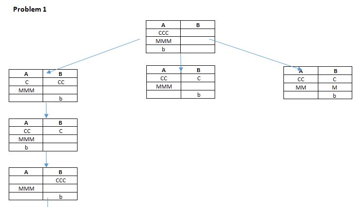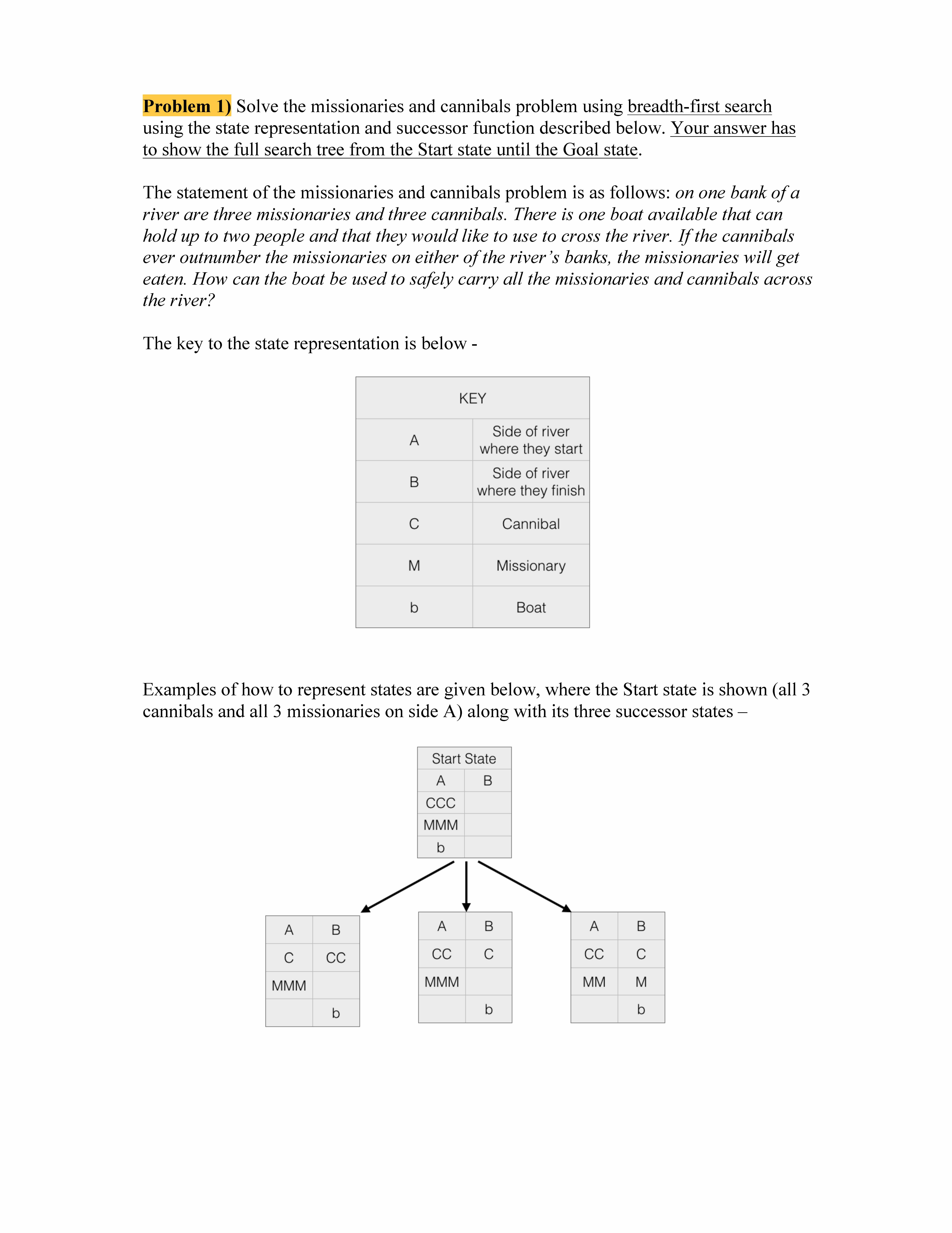Problem 1) Solve the missionaries and cannibals problem using bread...
