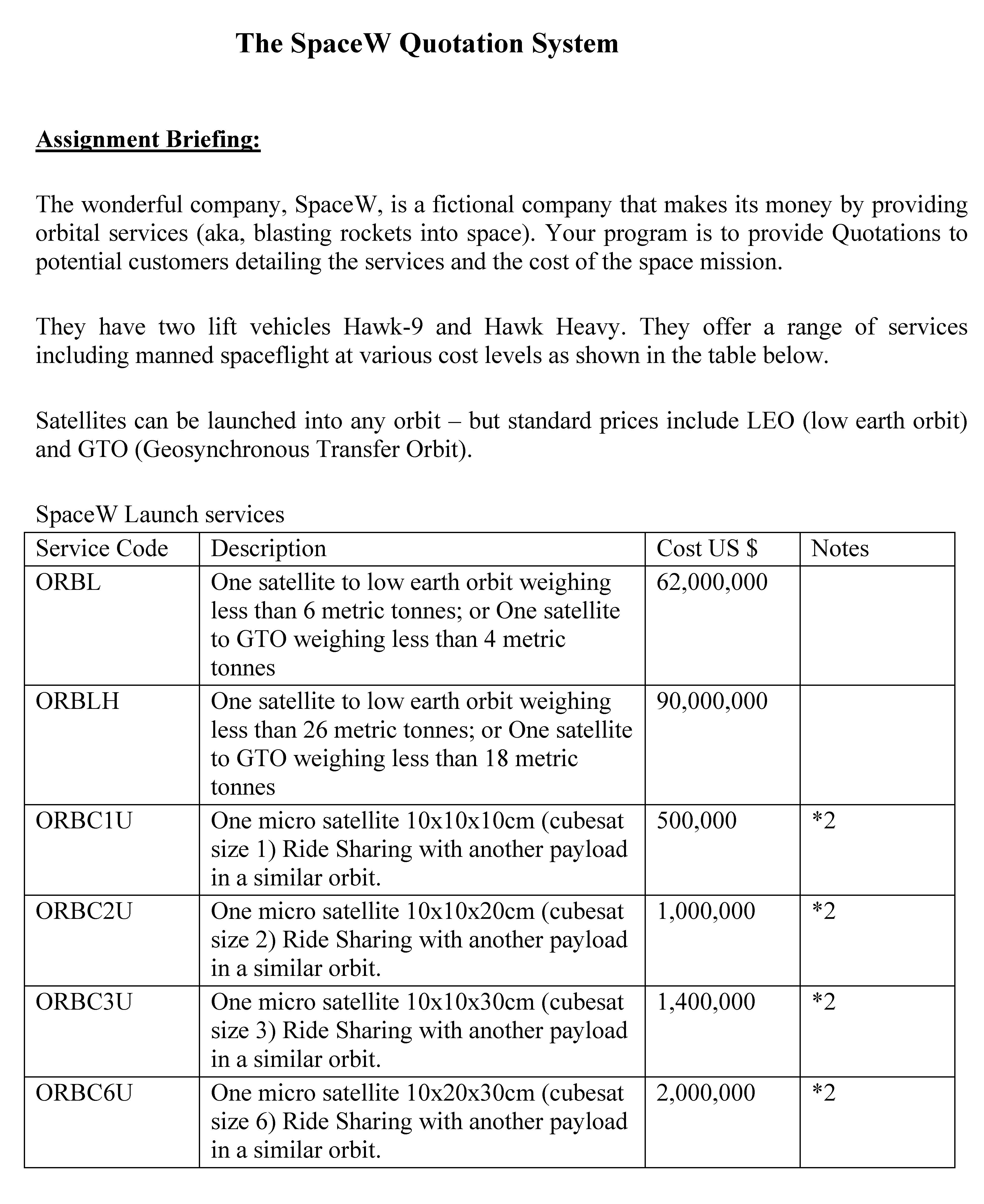 The SpaceW Quotation System Assignment Briefing: The wonderful co...
