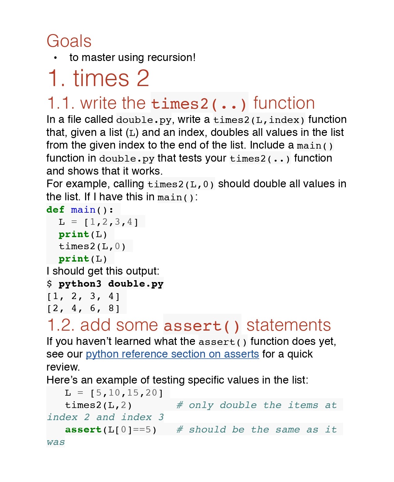 Goals to master using recursion! 1. times 2 1.1. write the times...