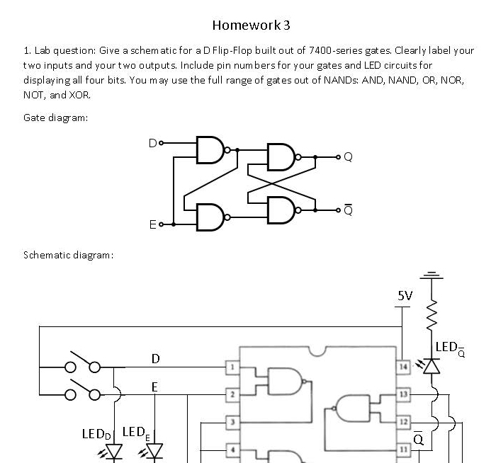 1. Lab question: Give a schematic for a D Flip-Flop built out of 74...