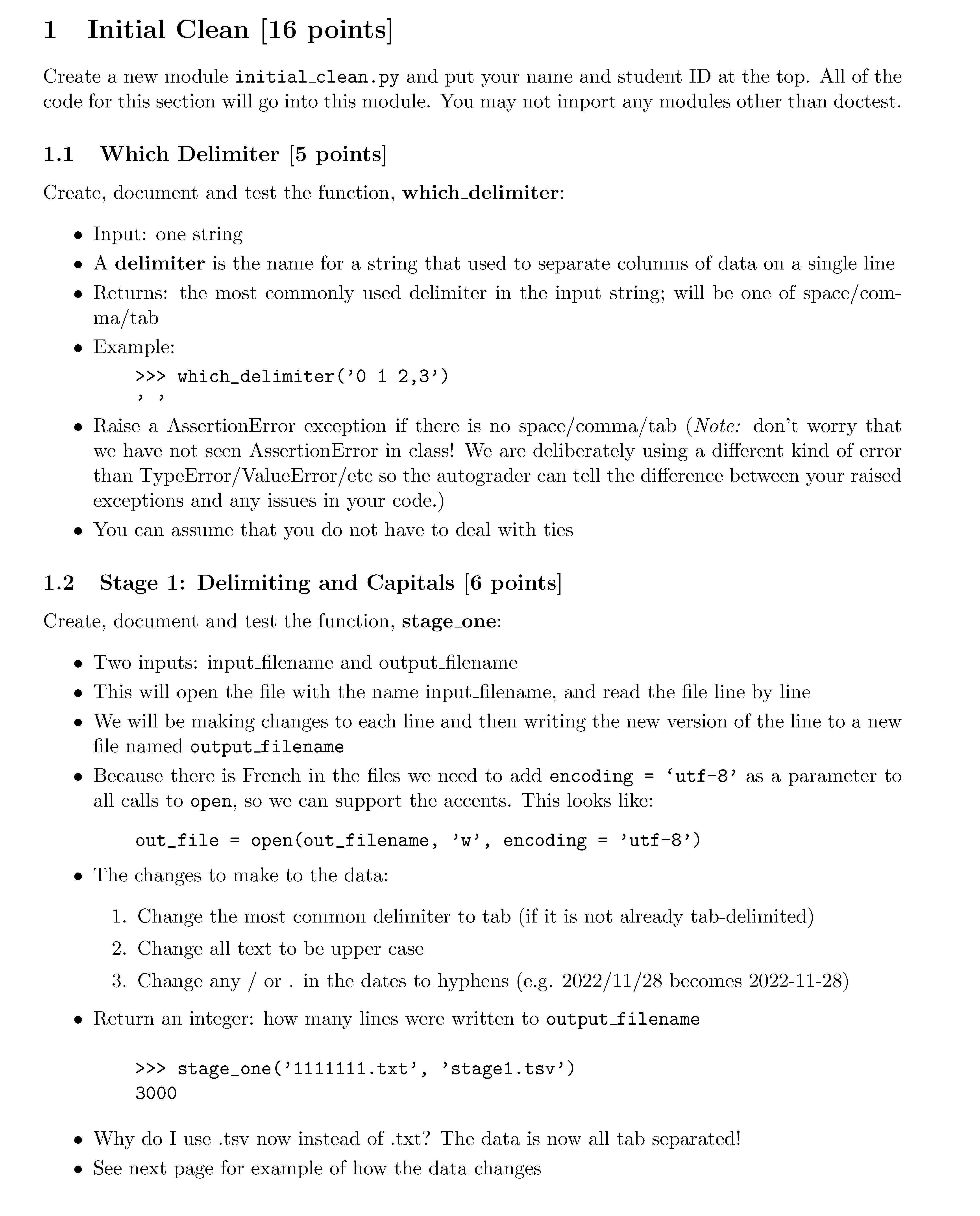 1 Initial Clean [16 points] Create a new module initial clean.py a...