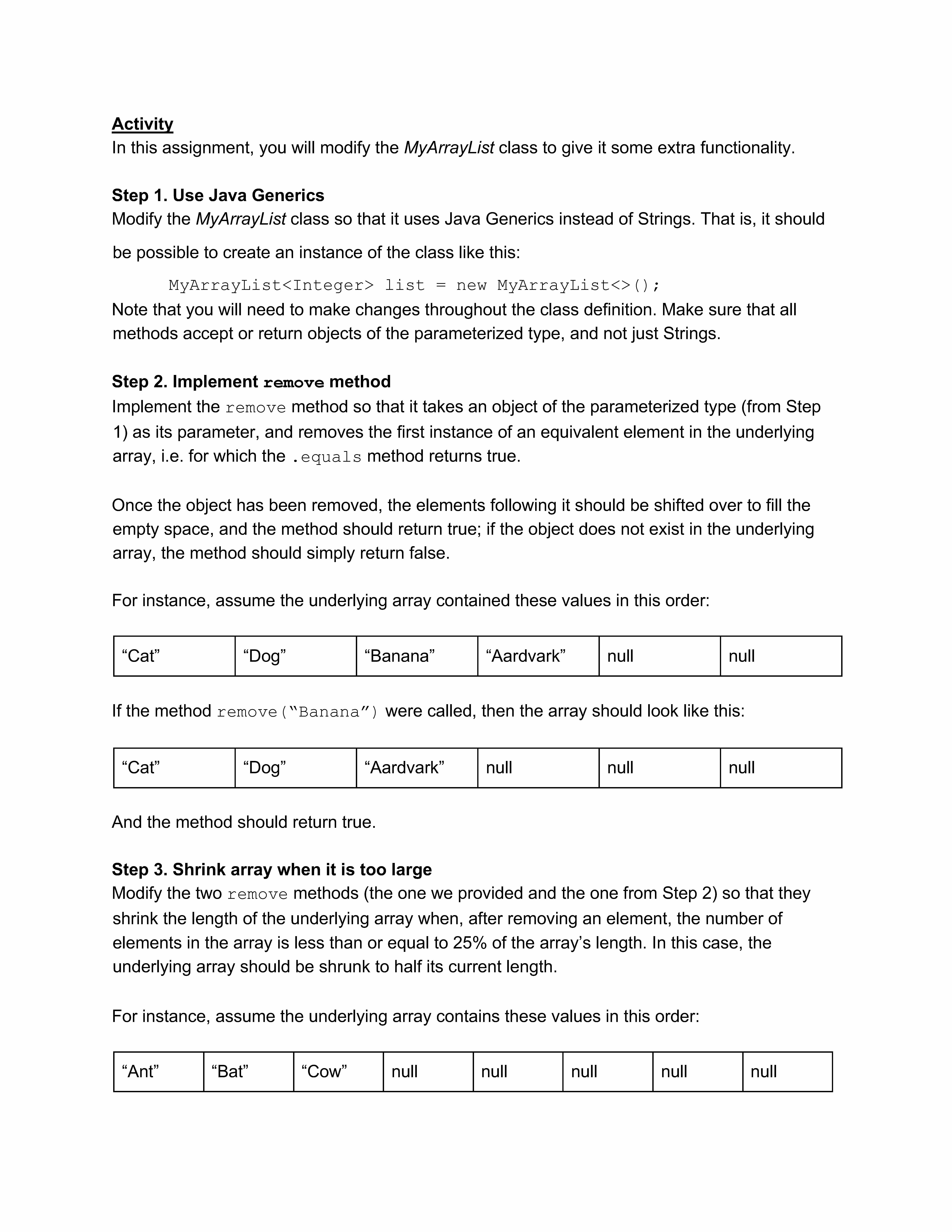 Activity In this assignment, you will modify the MyArrayList class...