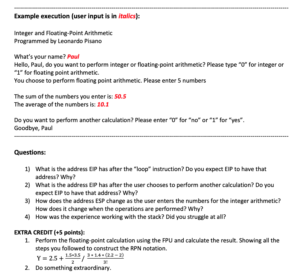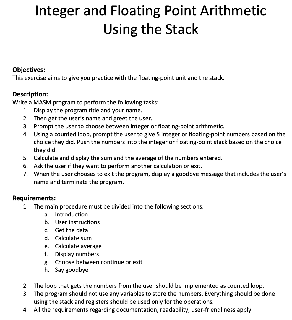 Integer and Floating Point Arithmetic Using the Stack Objectives:...