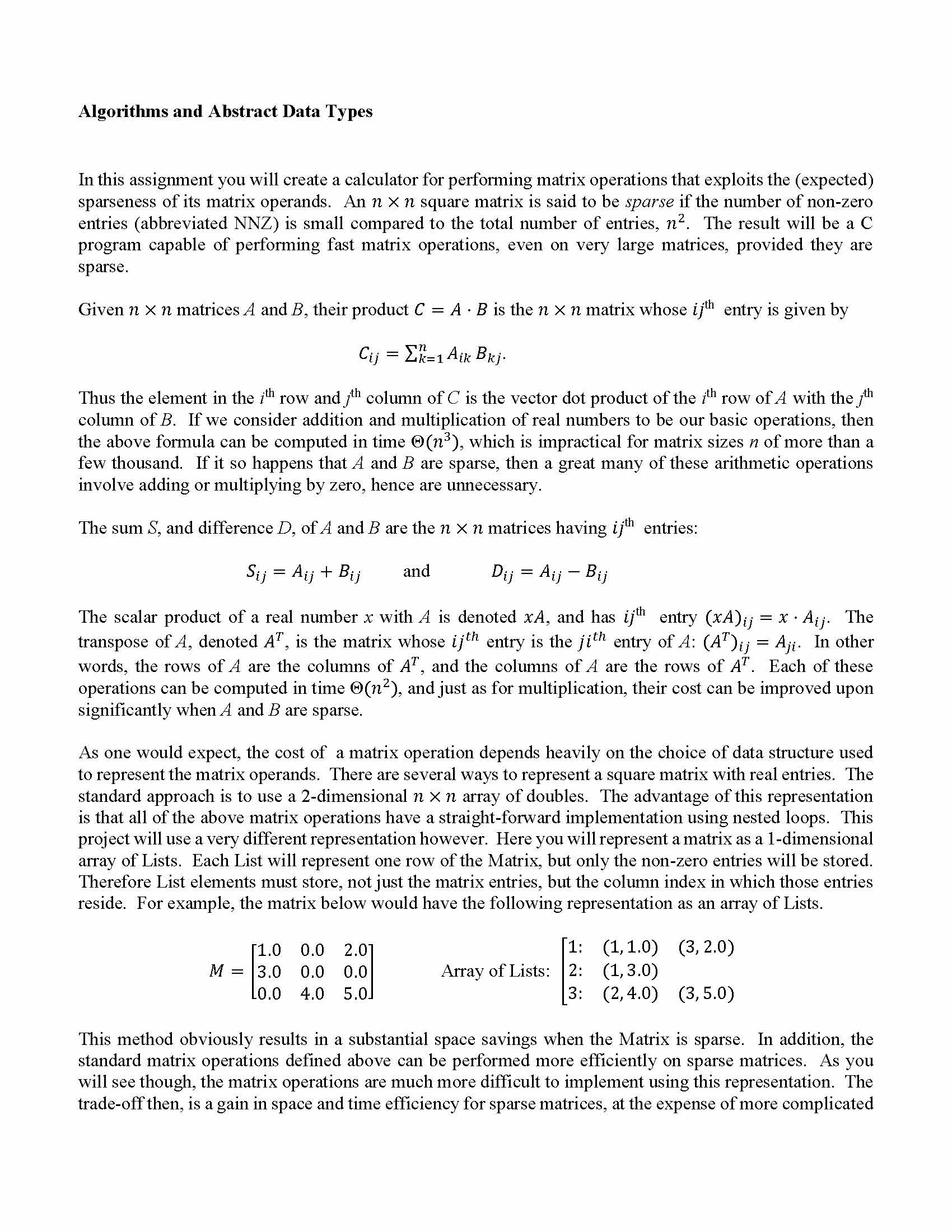 Algorithms and Abstract Data Types In this assignment you will crea...