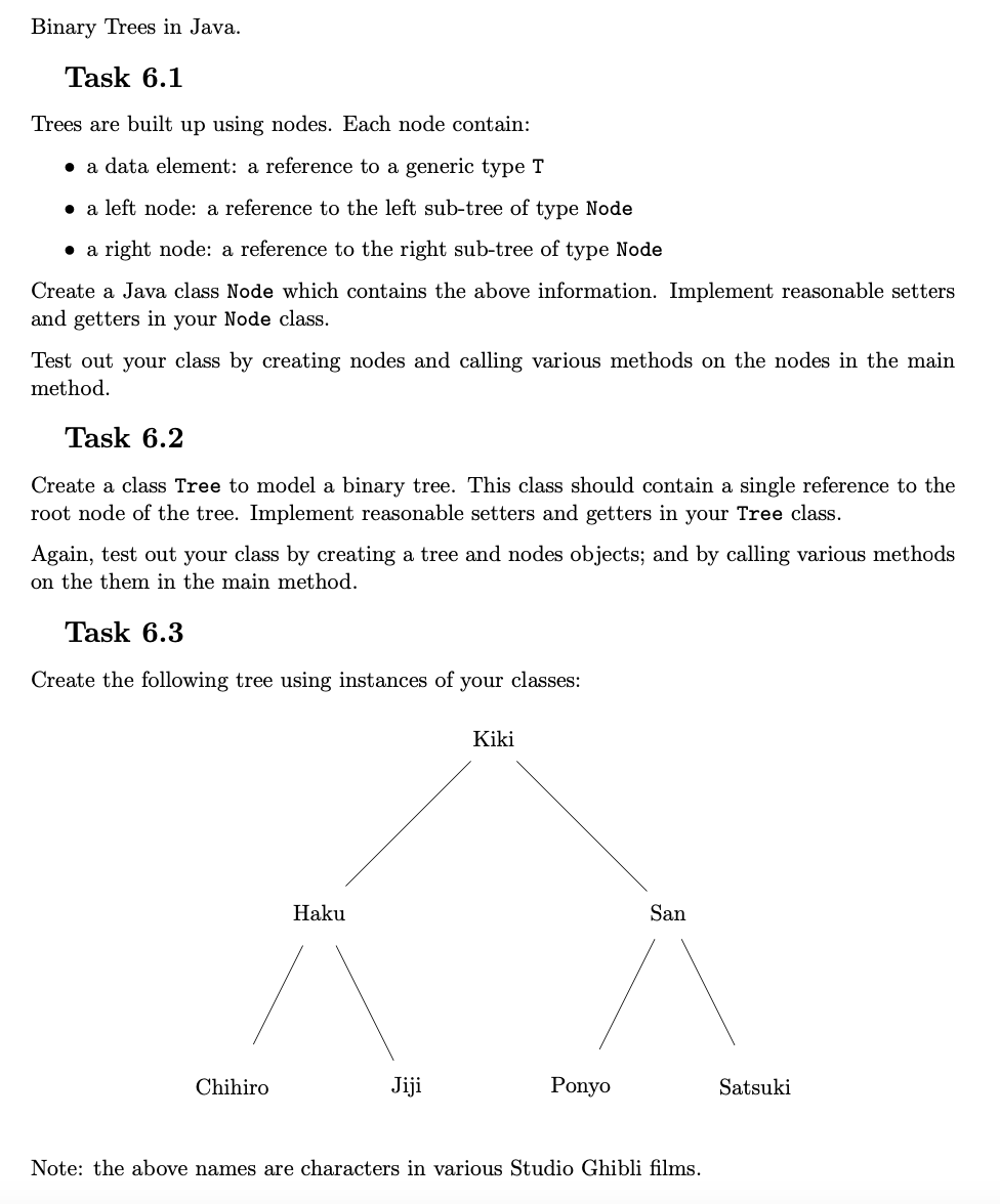 Binary Trees in Java. Task 6.1 Trees are built up using nodes. Ea...