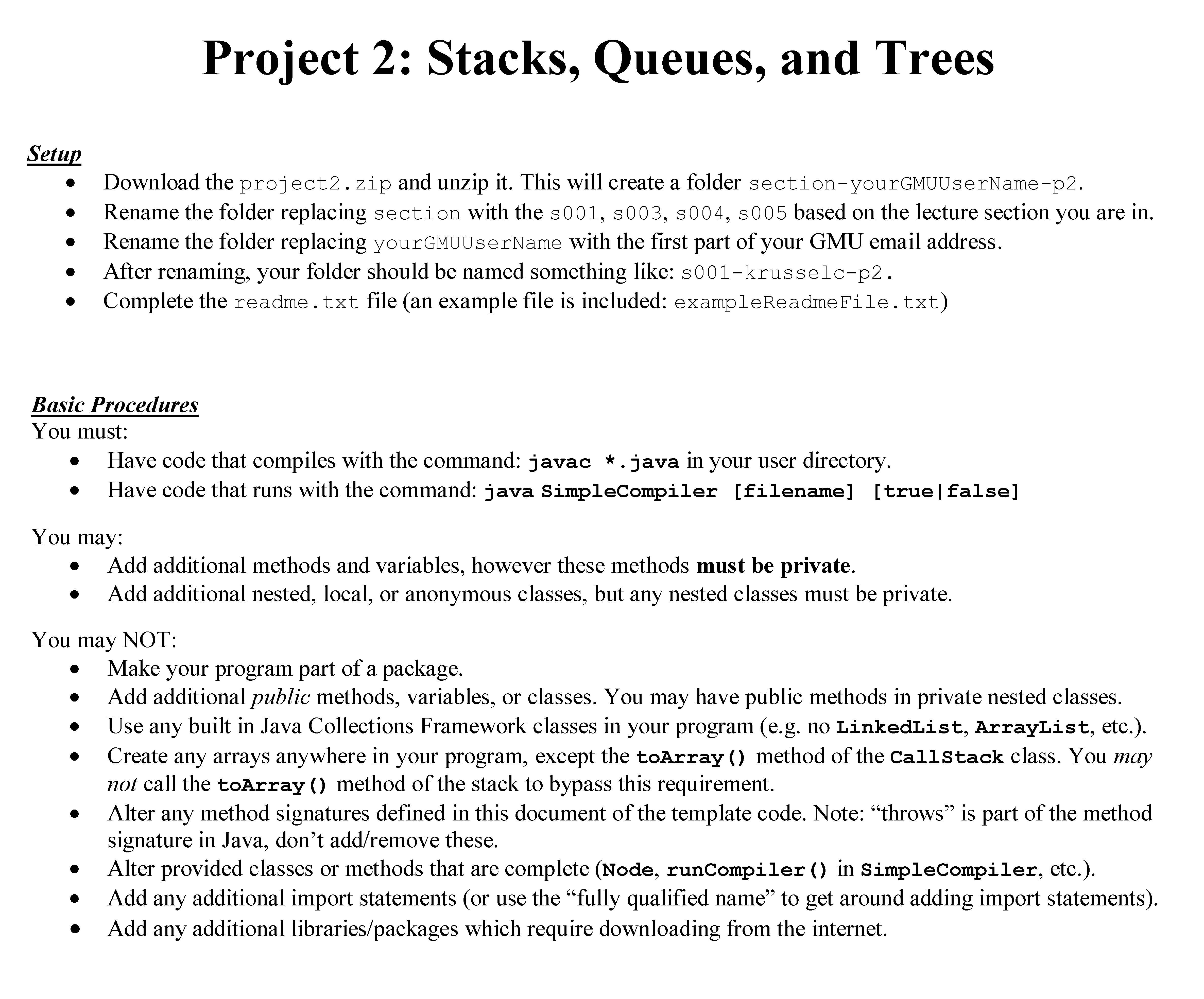 Project 2: Stacks, Queues, and Trees Setup ï‚· Download the p...